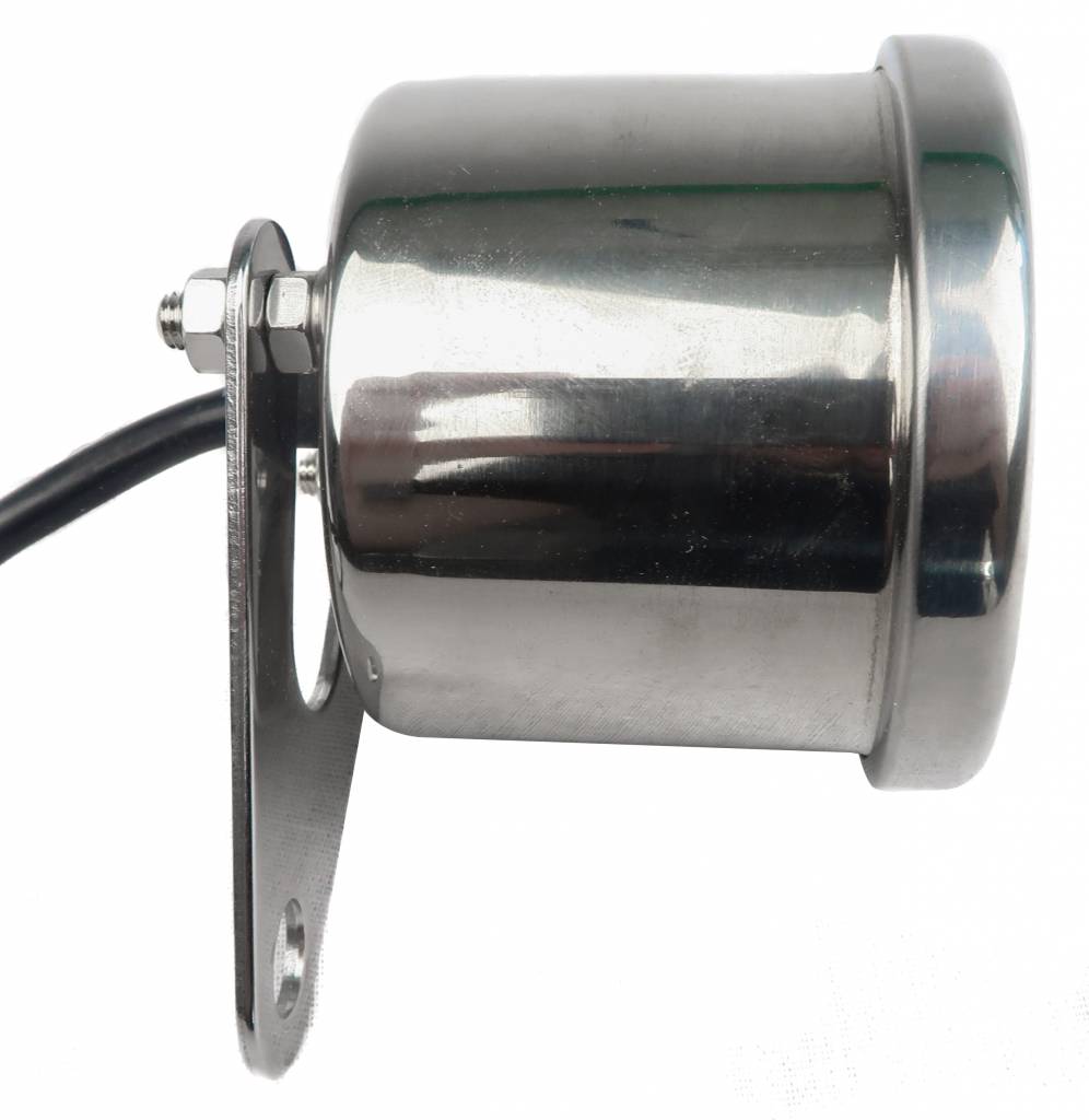 Edelstahl-Drehzahlmesser D = 60 mm, weißes Ziffernblatt, elektronisch, 15.000 U/min, 1:1 negativ. Die Beleuchtung ist weiß.