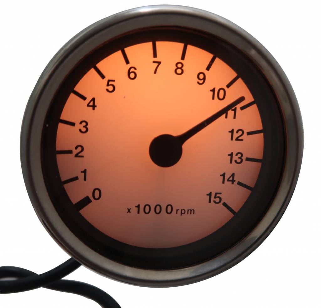 15.000 Edelstahl-Drehzahlmesser D60 mit weißes Ziffernblatt Elektronisch.