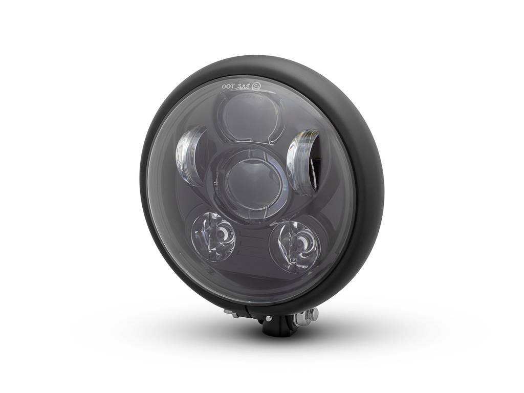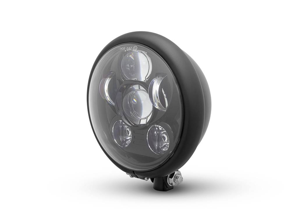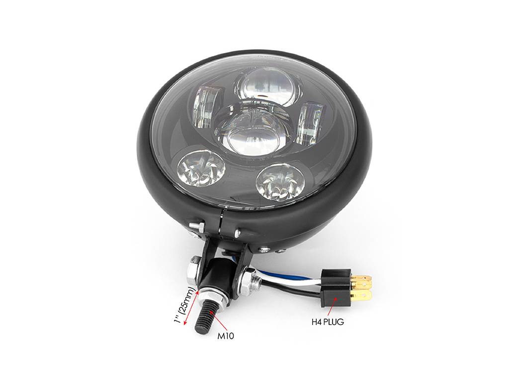 Dieser Universalscheinwerfer kombiniert ein Classic Bates Style Metallgehäuse mit einem modernen LED-Einsatz. Es hat eine universelle Bodenhalterung, die an fast jedem Motorrad montiert werden kann. Super hell und super cool.