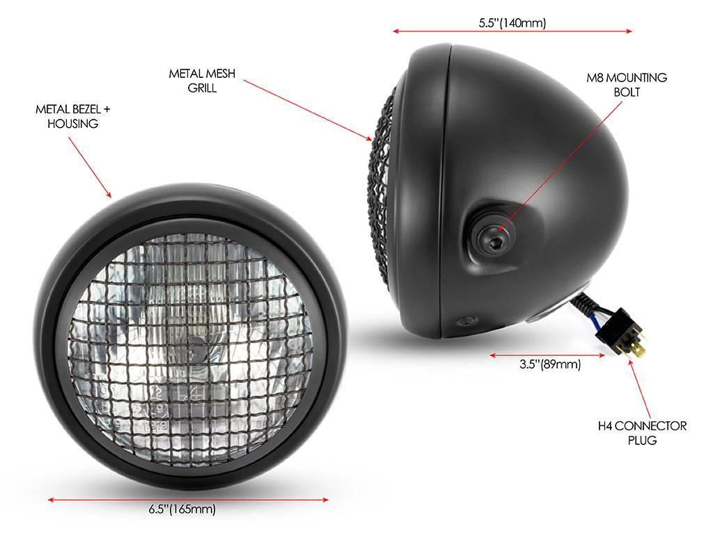 6" Mesh Scheinwerfer Scrambler Schwarz