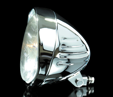 154 mm Hauptlampe, Metallgehäuse, verchromt, mit Standlicht, Bodenhalterung, Glühbirnen inklusive.