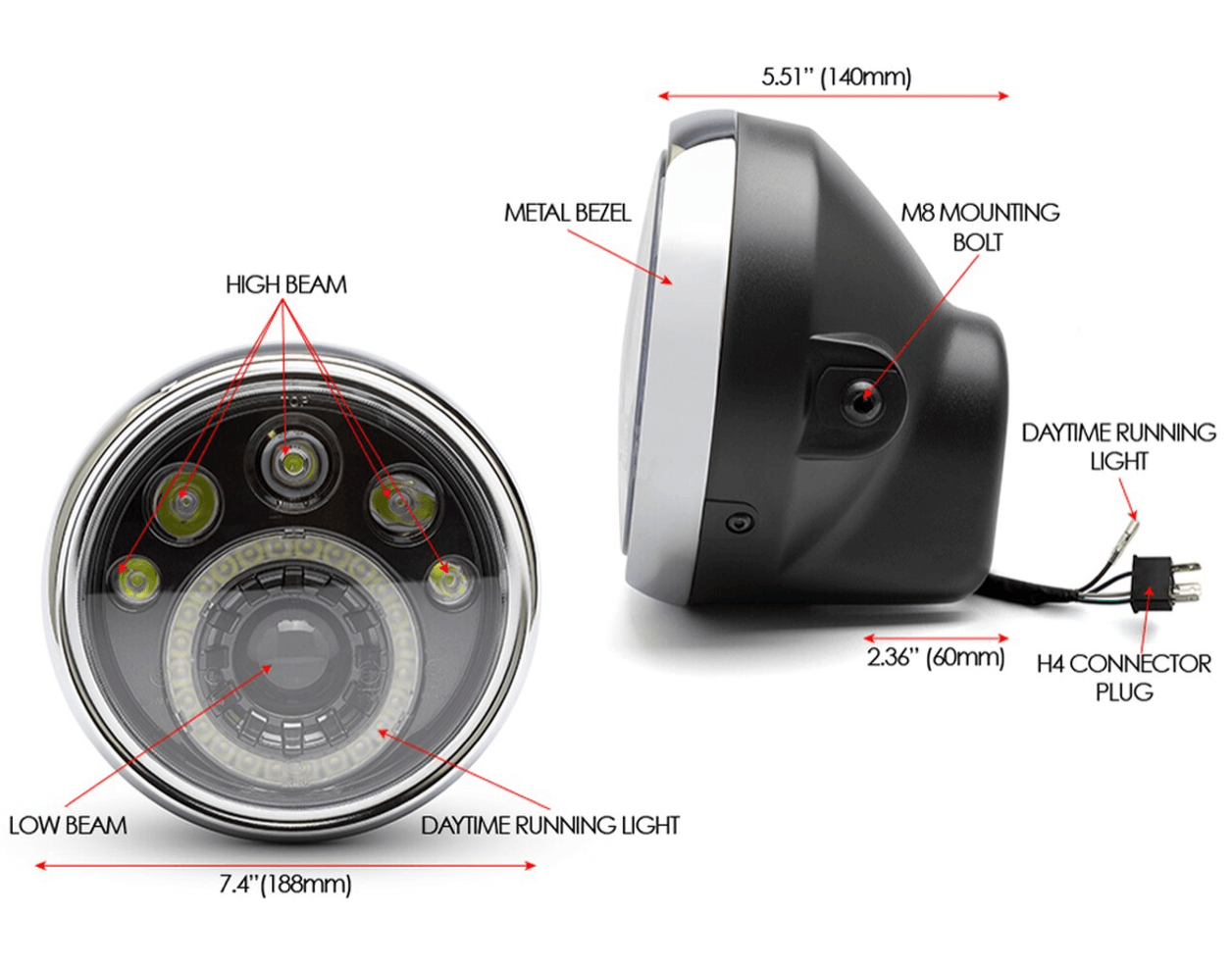 7 "Black & Chrome Multi Projektor LED Scheinwerfer