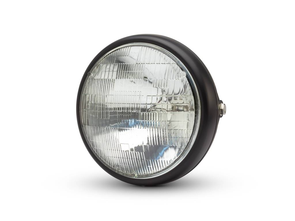 7 "Mattschwarz Shorty Metallscheinwerfer - 12v / 55w Sealed Beam