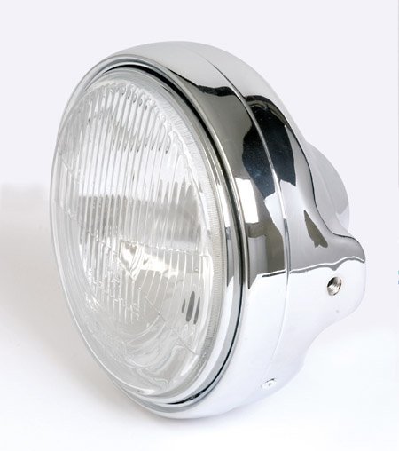 7 Zoll Hauptscheinwerfer, verchromtes Metallgehäuse zur seitlichen Befestigung, H4 Einsatz mit Standlicht.