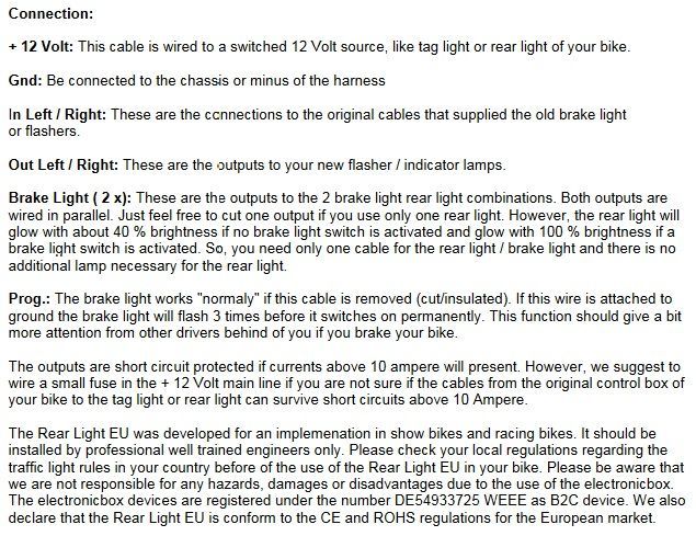 Fast alle amerikanischen Motorräder haben eine Kombination aus Bremslicht und Blinklicht. Mit anderen Worten, nur zwei Lampen, die sowohl als Bremslicht als auch als Blinklicht dienen. Infolgedessen ist es aufgrund der von der EU geforderten Anforderungen oft schwierig und kostspielig, Änderungen an aus den USA importierten Motorrädern vorzunehmen. Mit diesem System müssen Sie sich keine Sorgen mehr machen und können alles einfach und schnell umstellen.
