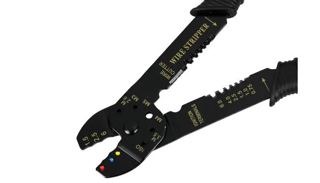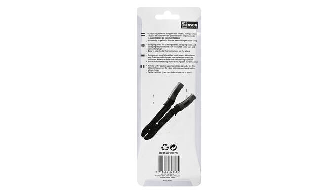 Das Crimpwerkzeug von Benson Tools ist eine vielseitige und langlebige Lösung für Elektroarbeiten. Es wurde zum Schneiden von Kabeln, Abisolieren von Drähten und Crimpen von isolierten und nicht isolierten Kabelschuhen und Anschlusssteckern entwickelt. Das benutzerfreundliche Design verfügt über klare Anzeigen an der Zange, sodass die Verwendung für verschiedene elektrische Anwendungen einfach und effizient ist.