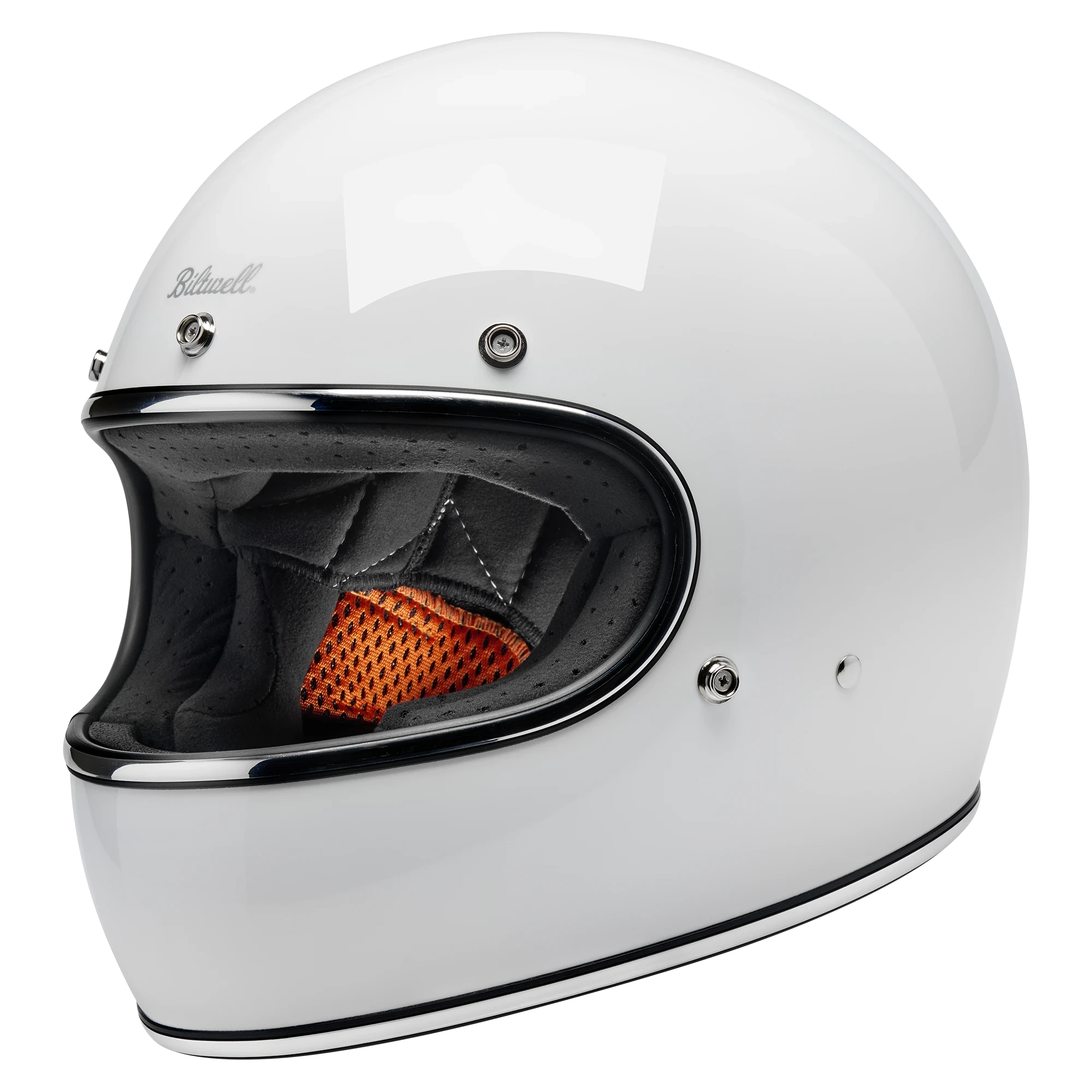 Der Biltwell Gringo Helm kombiniert eine klassische Motorsport-Ästhetik der 60er Jahre mit modernen Sicherheitsstandards und ist damit die ideale Wahl für Fahrer, die Stil und Sicherheit schätzen. Dieser Helm erfüllt die ECE R22.06 und DOT Zertifizierungen und bietet zuverlässigen Schutz auf der Straße. Die leichte, spritzgegossene ABS-Außenschale ist sowohl langlebig als auch stilvoll und verfügt über eine glänzende weiße Oberfläche, die auffällt.