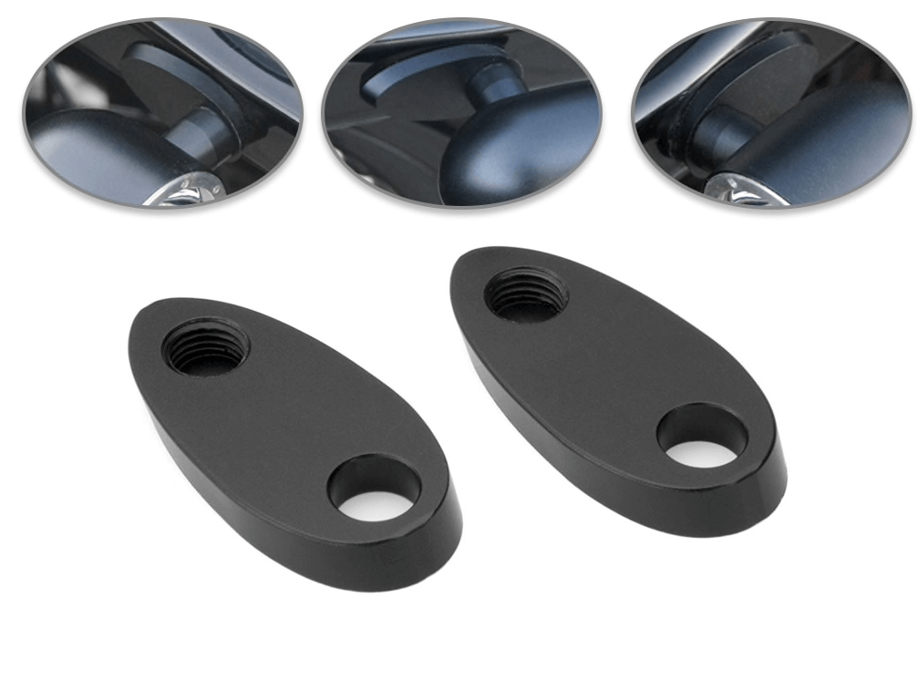 Hochwertige CNC-gefräste Blinker-Adapterplatten aus Billet-Aluminium. Mit diesen Adapterplatten können Sie die serienmäßigen hinteren Blinker entfernen und durch unsere Blinker oder andere marktübliche Blinker ersetzen.