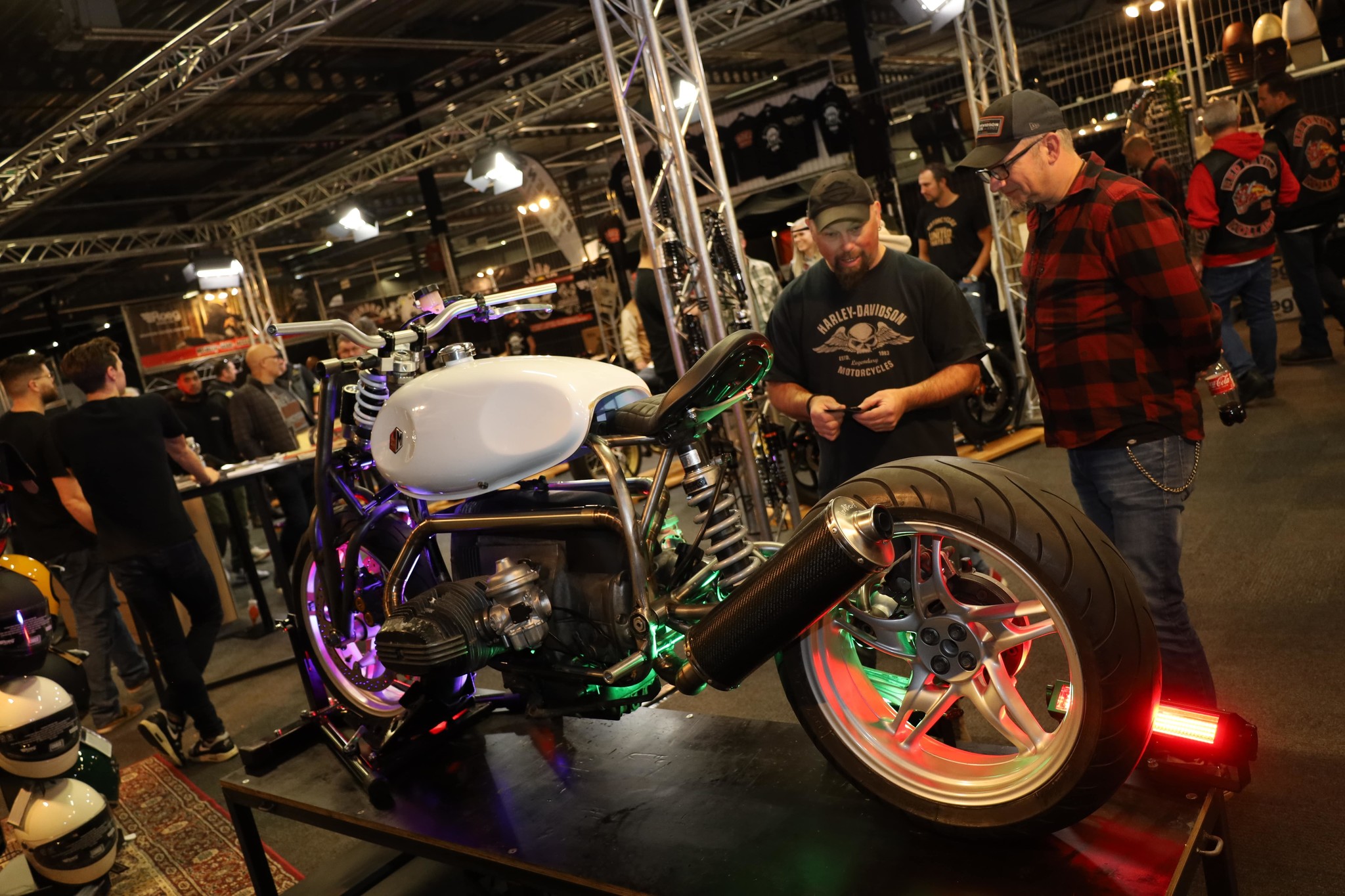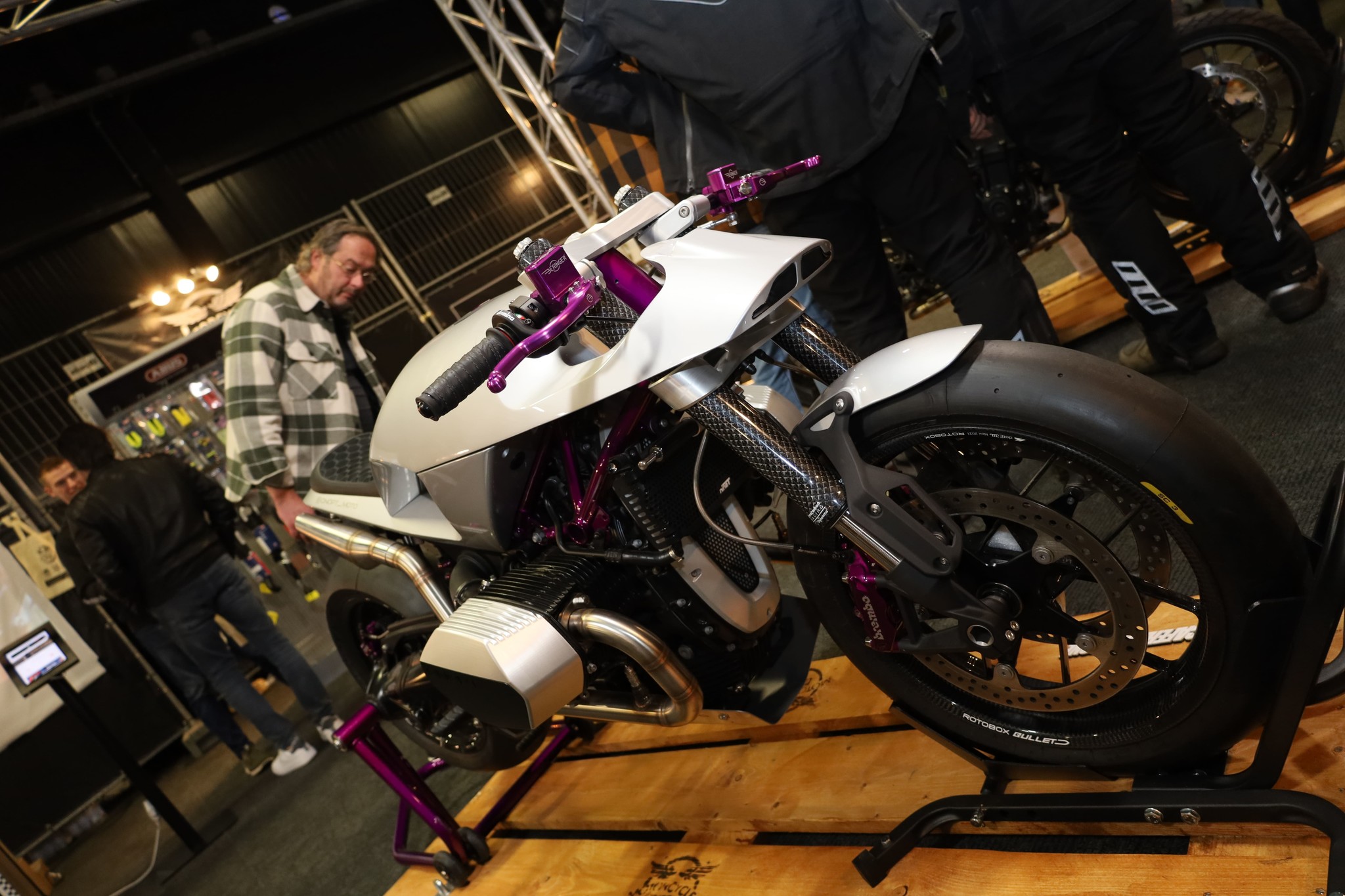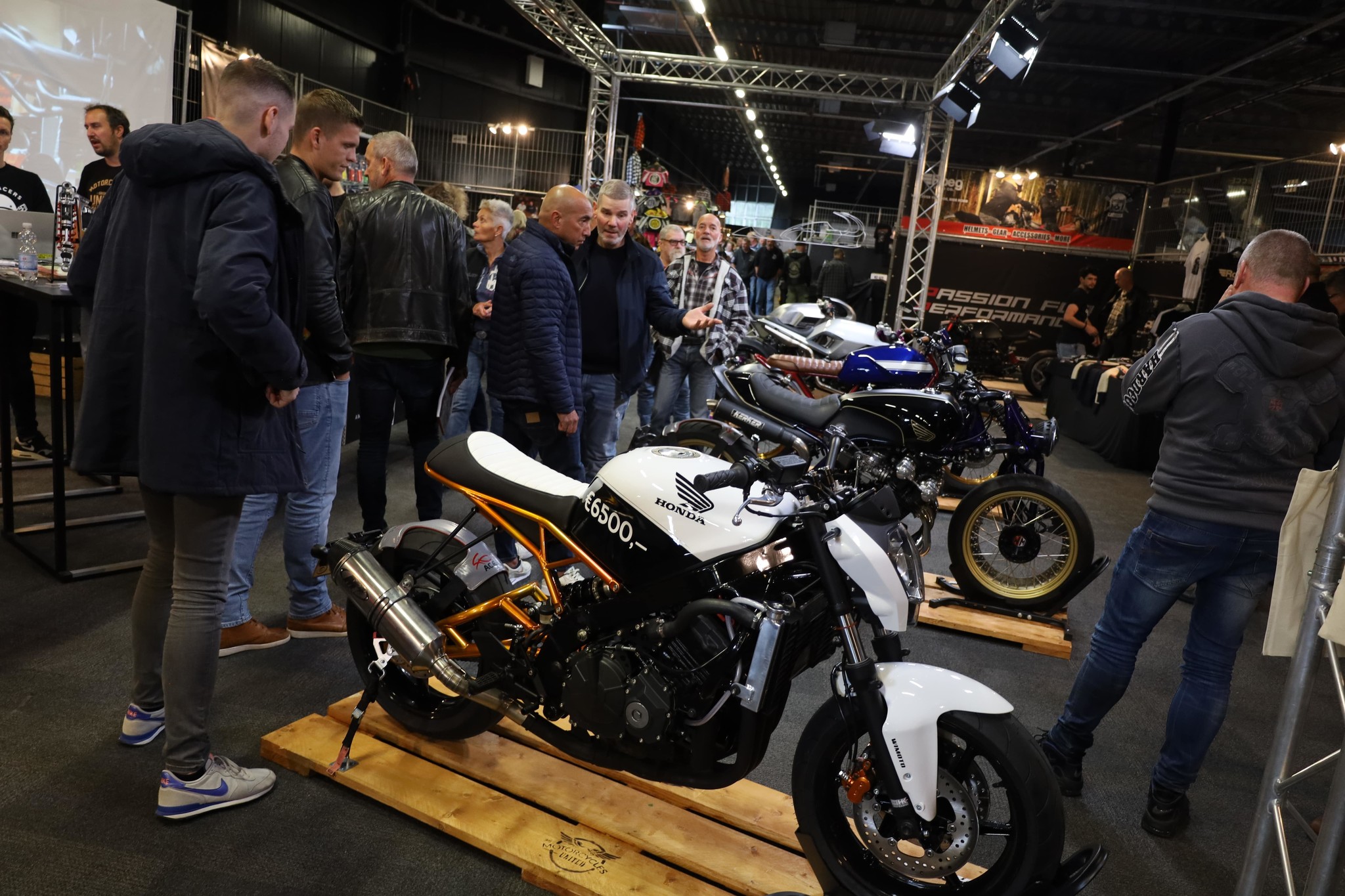 Dit jaar stonden wij niet alleen op de beurs! Samen met Rawmetalracers, Wimoto en Powerbick hebben wij een ruime stand van maarliefst +-180m2 ingevuld! Het idee van de stand was om iedereen mee te kunnen nemen in de wereld van de Caferacer, zo stonden wij daar niet alleen met producten maar was het gehele denk en werk proces zichtbaar gemaakt voor iedereen! Van het maken van je eigen frames tot het ontwerpen van het eerste design van jouw project!