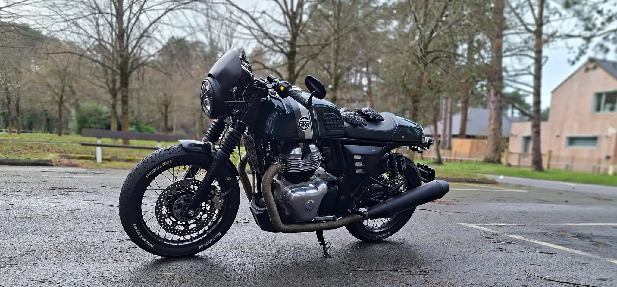 Alex began his project on a Royal Enfield Continental GT 650 in British Green, a bike known for its strong café racer style.