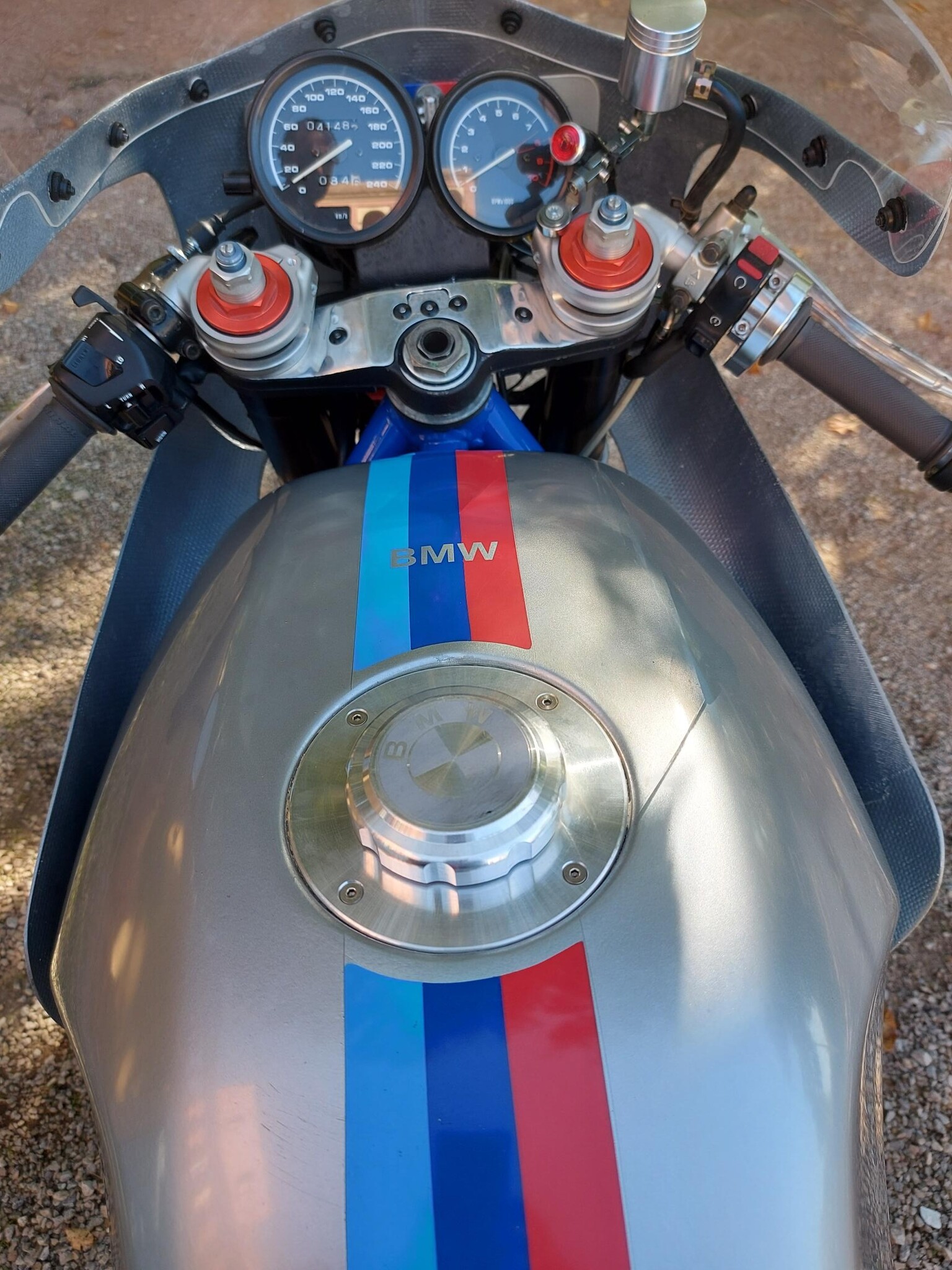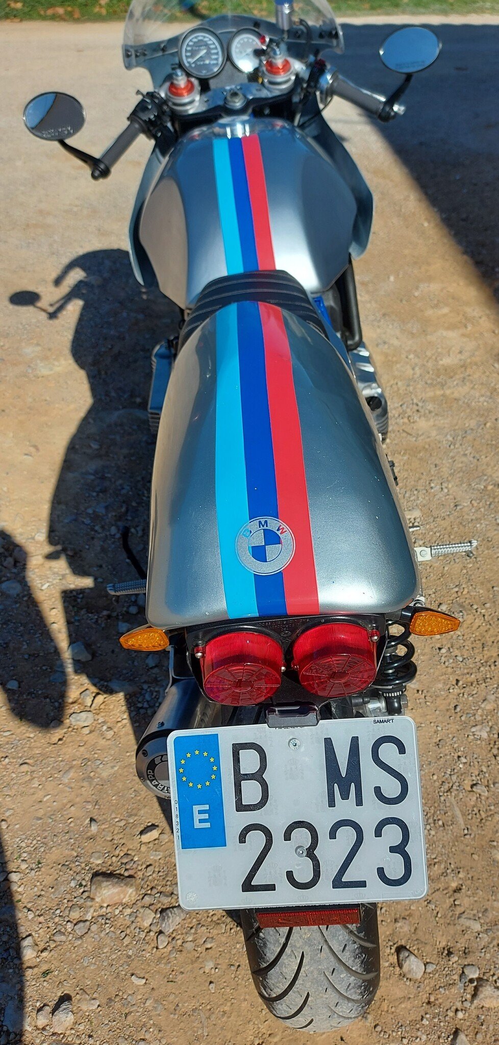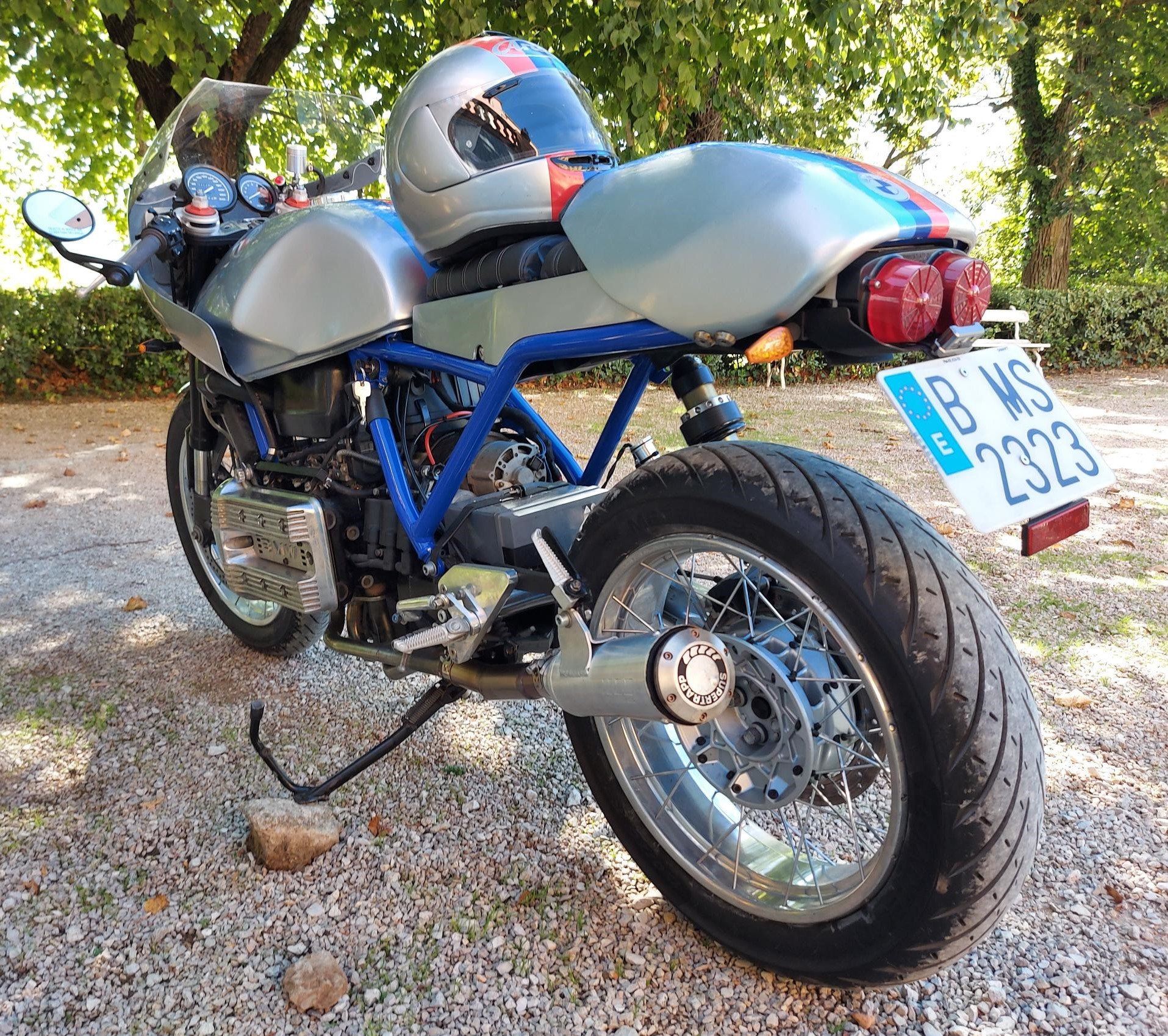 Maßgefertigt und handgefertigt, Federung und Vorderradbremsen von Aprilia Mille. BMW GS- und RT-Räder, Sitzbankabdeckung für 1 und 2 Passagiere, Ducati-Halblenker, Standardauspuff und Supertrapp, Verkleidung im 24-Stunden-Stil. Handgefertigte Yamaha-Fußstütze. Motor mit sehr geringer Kilometerleistung. Für den Straßenverkehr zugelassen.