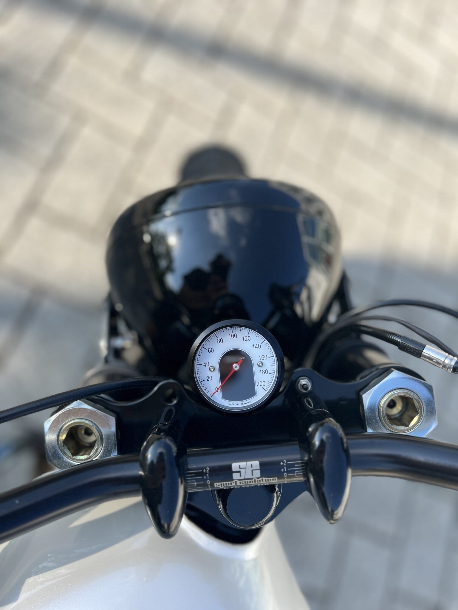 - Elektronik vollständig neu mit Motogadget M Unit Blue als Basis aufgebaut inkl. Motoscope Tiny Tacho (Keyless Go, App Verbindung etc.)