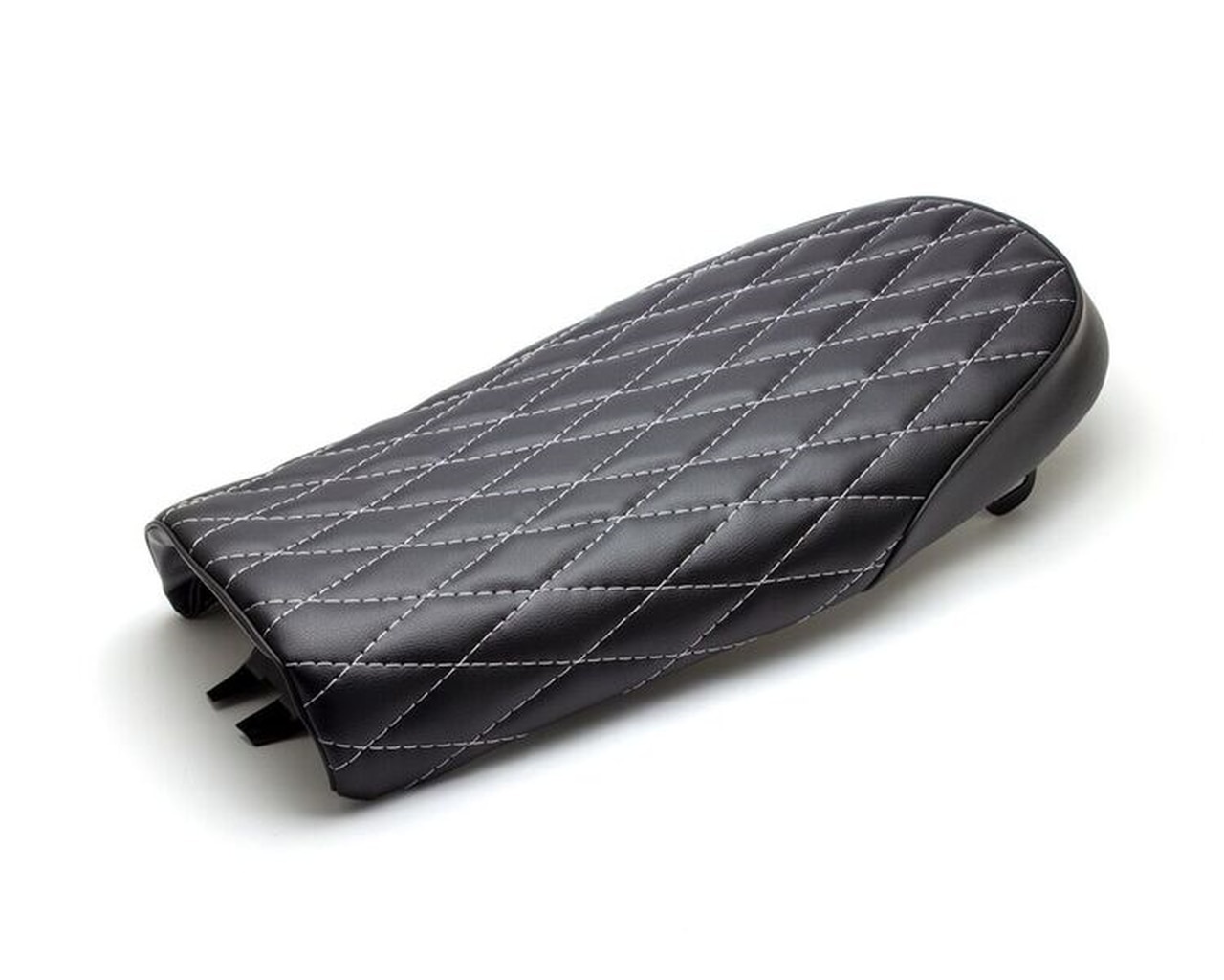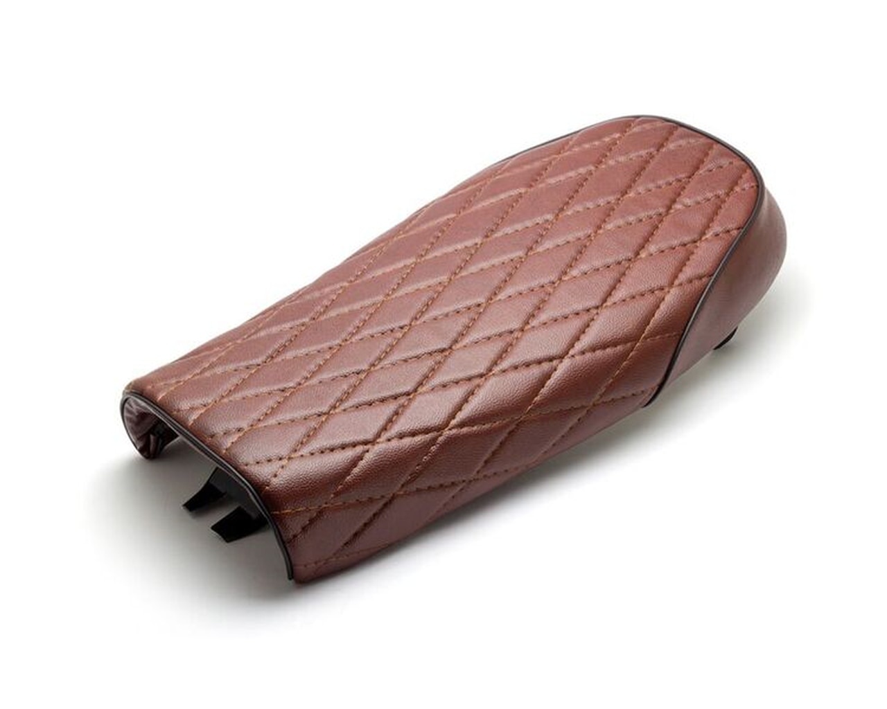 Brat Seat Diamond (schwarz oder braun). Diese Sitzbaugruppe verleiht Ihrem Fahrrad einen coolen Retro-Look. Es wurde aus hochwertigem Schaumstoff hergestellt und ist mit einem Kunstledermaterial der Klasse A überzogen. Es kann an die meisten Cafe Racer, Scrambler und Brat Bikes nachgerüstet werden. Dieser Sitz ist sehr bequem und eignet sich für pingelige Käufer, was ihn zu einem brillanten DIY-Upgrade macht.