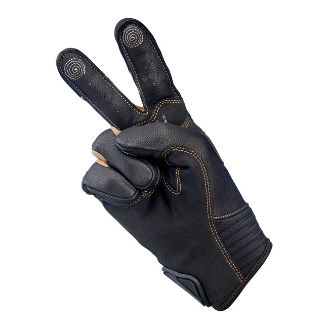 Wie andere Leder/Textil-Hybride auf dem Sportmotorradmarkt zeichnet sich der Biltwell Bridgeport Handschuh durch eine robuste Konstruktion und eine rassige Silhouette aus. Geschmeidiges Ziegenleder, dreilagiges belüftetes Polyester, ballistisches Nylon und CE-zertifizierte Aufprall- und Reibungszonenverstärkung machen unseren fortschrittlichsten Drei-Jahreszeiten-Reithandschuh bereit fürs Geschäft. Handfläche, Fingerspitzen, Daumen und Reibungsflächen aus geschmeidigem Ziegenleder. Flexible thermoplastische Gummilasche am Handgelenk mit geformtem Aufprallschutz. Anatomisch geformte Handfläche aus synthetischem Wildleder mit Lycra-Flexzone. Bequemes, in zwei Richtungen dehnbares, laminiertes Neopren für das Handgelenk. Finger-, Hand- und Knöchelschutzeinsätze aus ballistischem Nylon. Leitfähige Nähte an Fingern und Daumen ermöglichen die Bedienung von Smart Screens. Lycra-Dehnungseinsätze in den Fingergelenken für zusätzliche Fingerfertigkeit. Gepolsterter Knöchelschutz aus schlagfestem Kunststoff mit dreilagigem, belüftetem Einsatz. Silikon-Traktionslogo auf der Handfläche. Geformte Kunststoff-Fingerbelüftung. CE-zertifiziert für Freizeitfahrten auf der Straße und abseits der Straße.