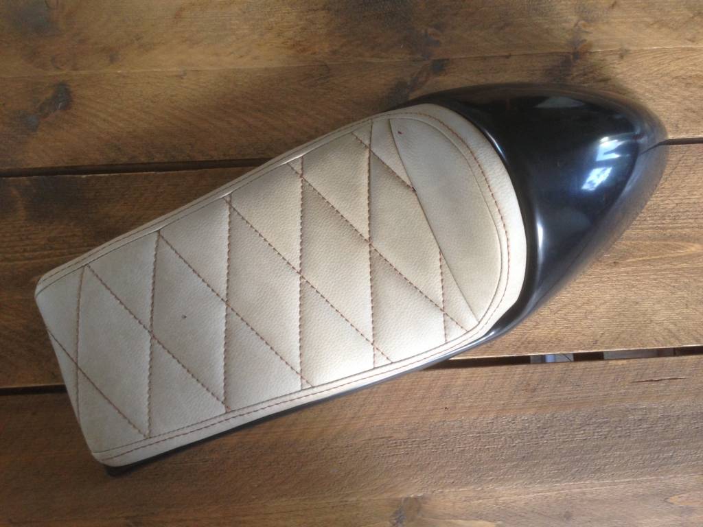 Schöne Cafe Racer Sitzbank Schwarz mit brauner Sitzauflage in Rautennaht aus Kunstleder. Sitzbankschale ist aus schwarzen ABS Plastik hergestellt und hat eine sehr gute Qualität. Universell verwendbar für Cafe Racer umbauten. Für viele Motorradmodelle passend. (siehe Bilder). Die Sitzschale kann leicht bearbeitet werden zwecks Halterungen für das anbringen am Rahmen. Das Sitzpolster kann für die Montage am Rahmen abgenommen werden.
