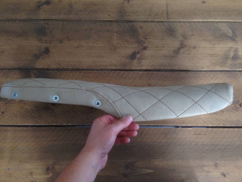 Bezug ist aus Braunen Kunstleder in Rautennaht genäht.