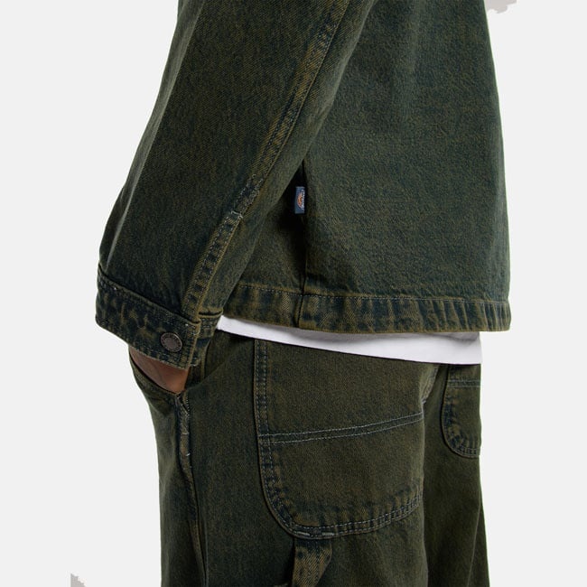 Die Lewistown Jeansjacke ist eine lässig geschnittene Coach-Jacke aus 11 oz schwerem Baumwoll-Denim. Sie verfügt über schräge Leistentaschen, Druckknöpfe aus Metall und ein vom traditionellen Dickies-Logo inspiriertes Logo auf der linken Brust. Diese Jacke ist eine moderne Interpretation klassischer Arbeitskleidung und zeichnet sich durch Langlebigkeit und hohen Tragekomfort im Alltag aus.