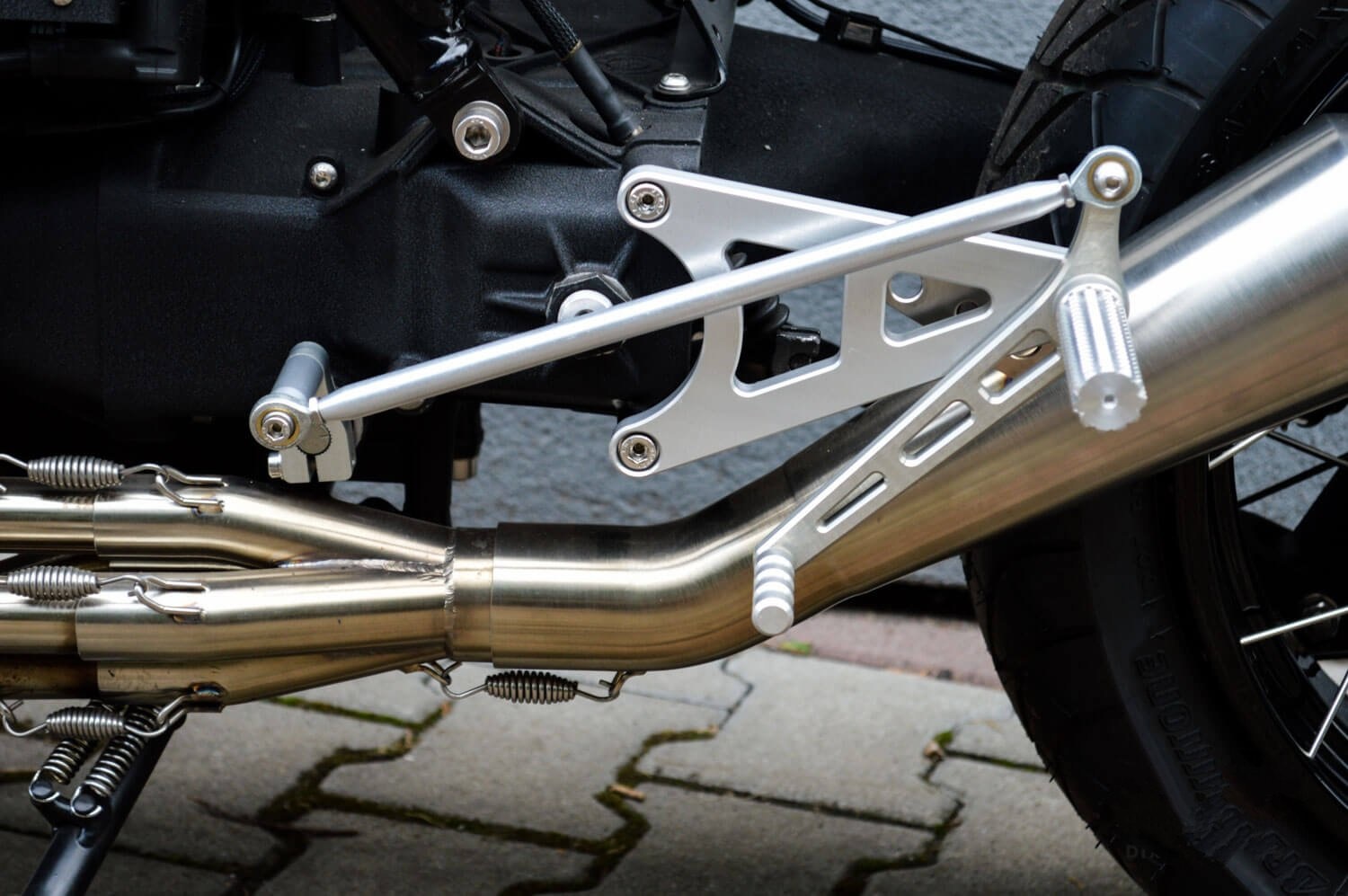 Fahrer-Fußrastensätze vorn MODEL – 1 (Lang) für BMW K100/K75/K1100 Cafe Racer Scrambler | Silber