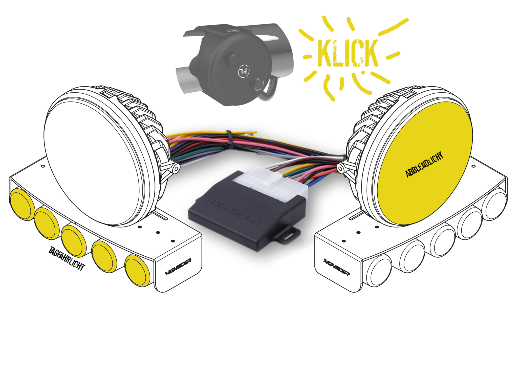 HIGHSIDER E-BOX DRL TOUCH, zum TFL-Umschalten per Knopfdruck, 20 Pole.