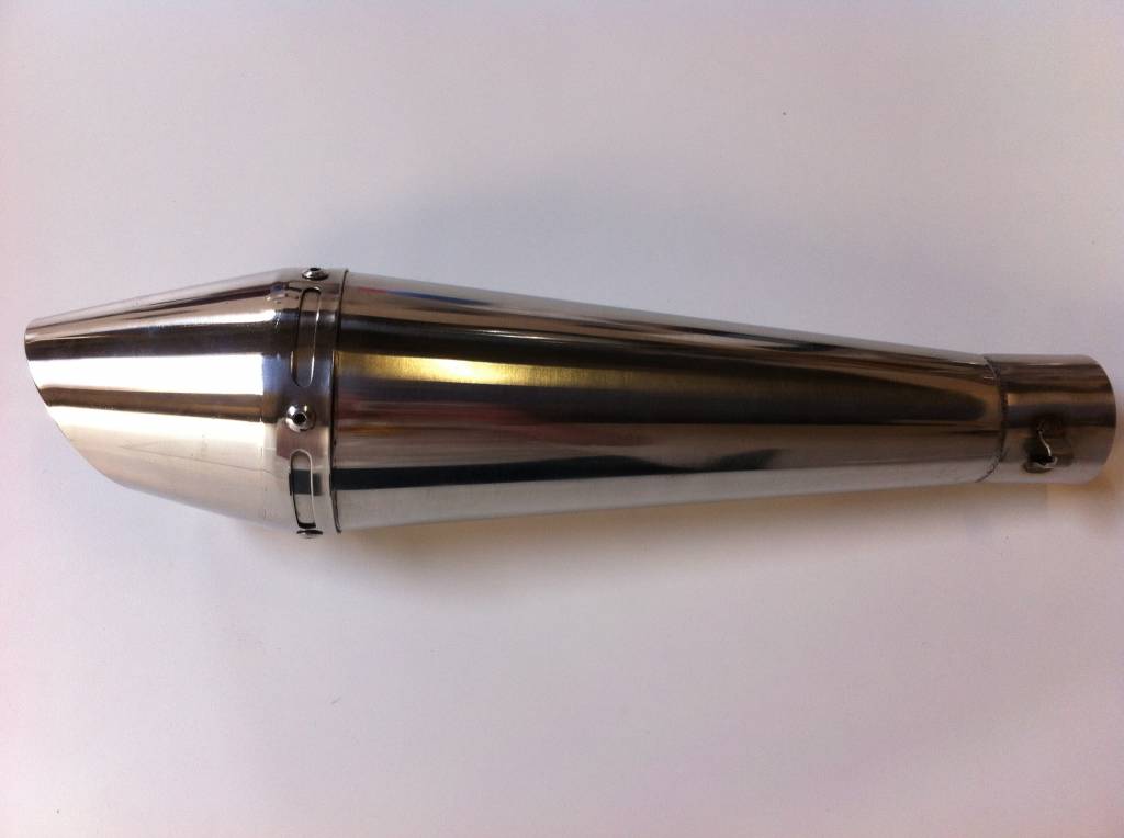 Handmade Edelstahl GP auspuff in der agressive Raw-Stil. Dieser fantastische Schalldämpfer ist aus Edelstahl gefertigt und kann auf 2 Seiten platziert werden.