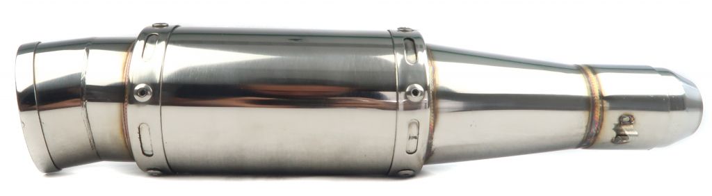 Edelstahl GP Auspuff Short. Dieser fantastische Schalldämpfer ist aus Edelstahl gefertigt und kann auf 2 Seiten platziert werden.
