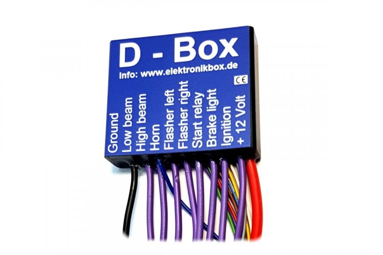 Neue Version 2021. Die neue D-Box hat jetzt auch die Funktionalitäten der T-Box und G(2)-Box! Die D-Box kann auch mit nur 2 Tasten bedient werden (T-Box-Modus). Die D-Box wechselt automatisch in den G-Box-Modus, wenn Sie einen Lenkeradapter anschließen. Die neue Box verfügt außerdem über einen Seitenständer- und Neutralschaltereingang sowie einen Blinkerausgang für den Tacho.