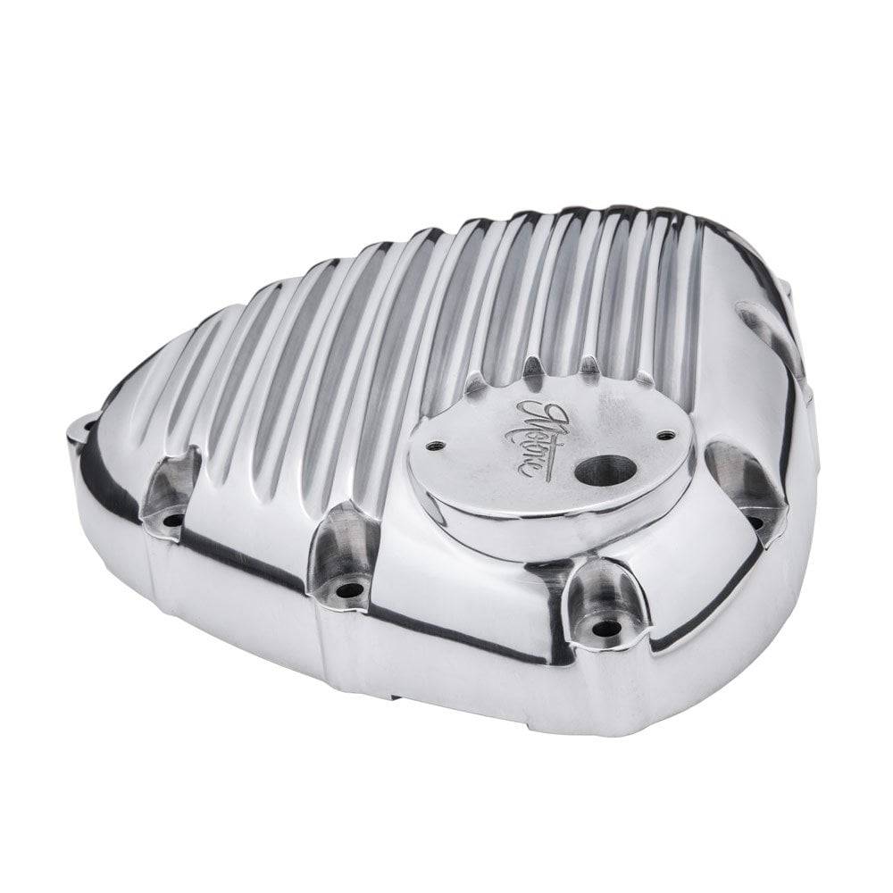 Hochdruck-Druckguss- Ersatz-Motorabdeckung mit einem Lamellenmuster, das direkt von den Triumph-Aftermarket-Teilen des vergangenen Jahrtausends inspiriert wurde, wie die berühmtesten Webco und Magnusson (MPD).
