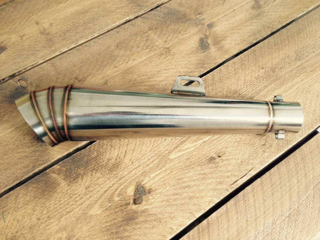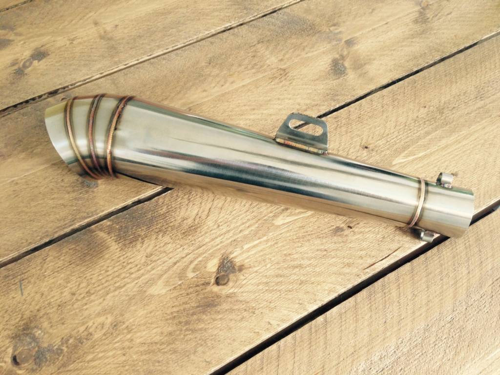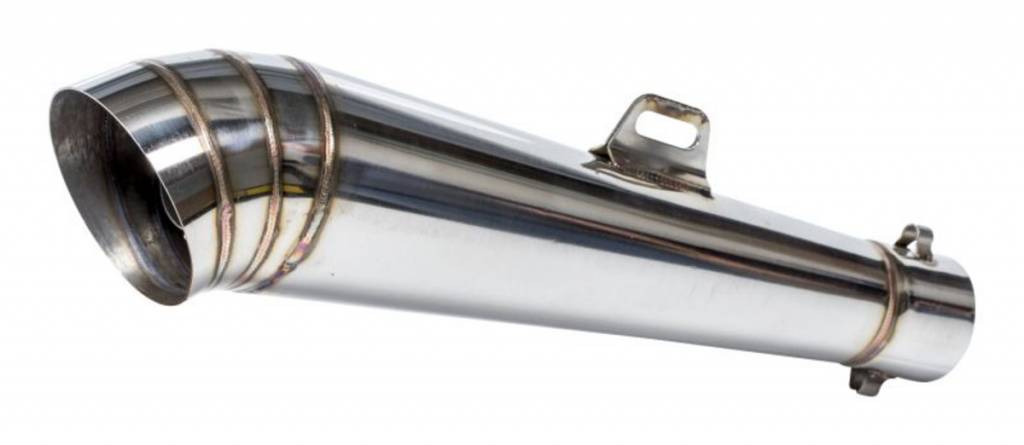 Handgefertigter Classic GP-Schalldämpfer plus Dezibel-Killer. Dieser schöne Schalldämpfer ist aus Edelstahl gefertigt und wird direkt mit einem Dezibel-Killer geliefert. Der Schalldämpfer kann an 2 Seiten angebracht werden. Der Anschlussdurchmesser beträgt 51mm. Die Gesamtlänge des Schalldämpfers beträgt 400 mm.