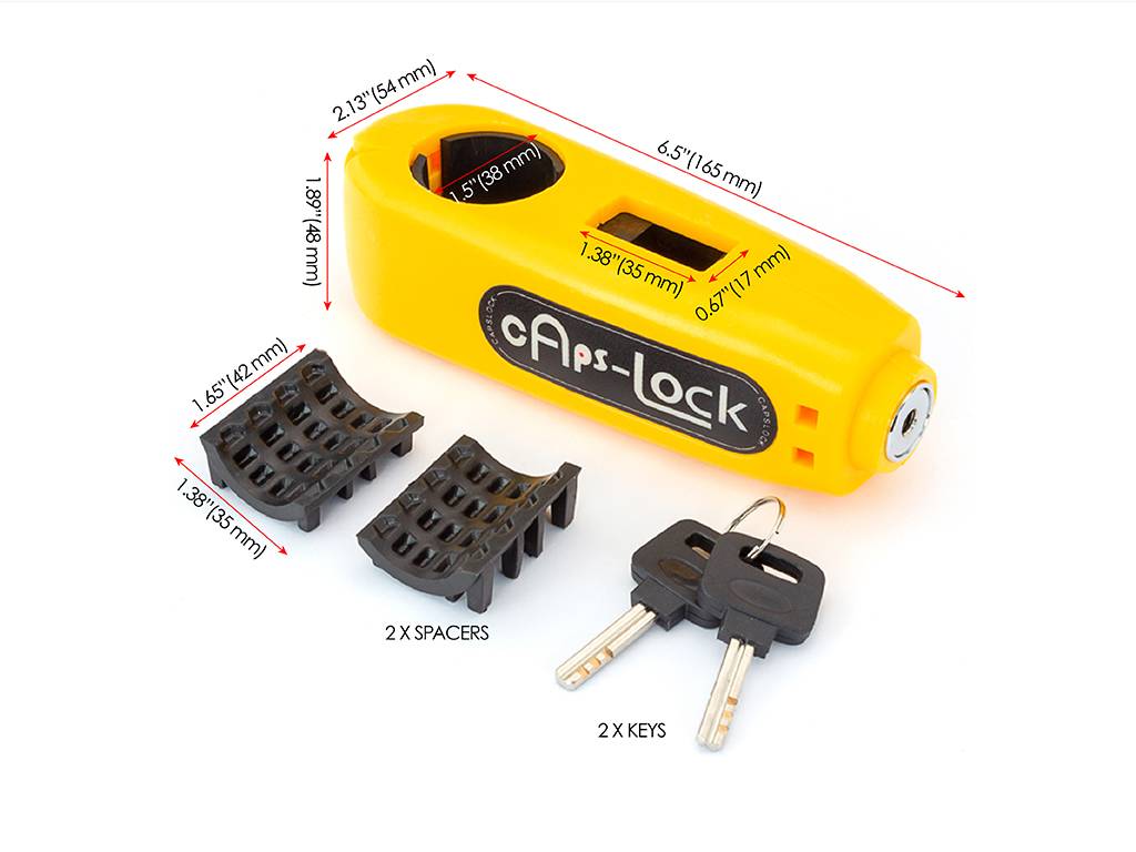 Diese Griffsperre ist eine einfach zu bedienende, gut sichtbare und gut gemachte Diebstahlsicherung für alle Motorräder, Roller und ATVs. Es blockiert einfach den vorderen Bremshebel am Gashebel und verhindert so, dass das Fahrzeug weggedrückt wird.