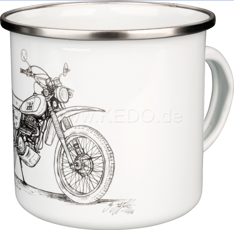 Mit dieser wunderschönen emaillierten Kaffeetasse werden Sie Ihre Liebe zum XT nicht verbergen! Ein Muss für jeden Yamaha Fan.