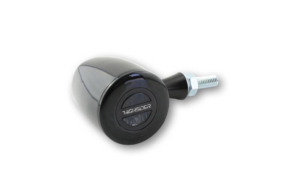 HIGHSIDER ROCKET CLASSIC LED-Rücklicht / Blinkleuchte wird mit einem schwarzen Aluminiumgehäuse und Rauchglas geliefert, E-gekennzeichnet für die Rückmontage.
