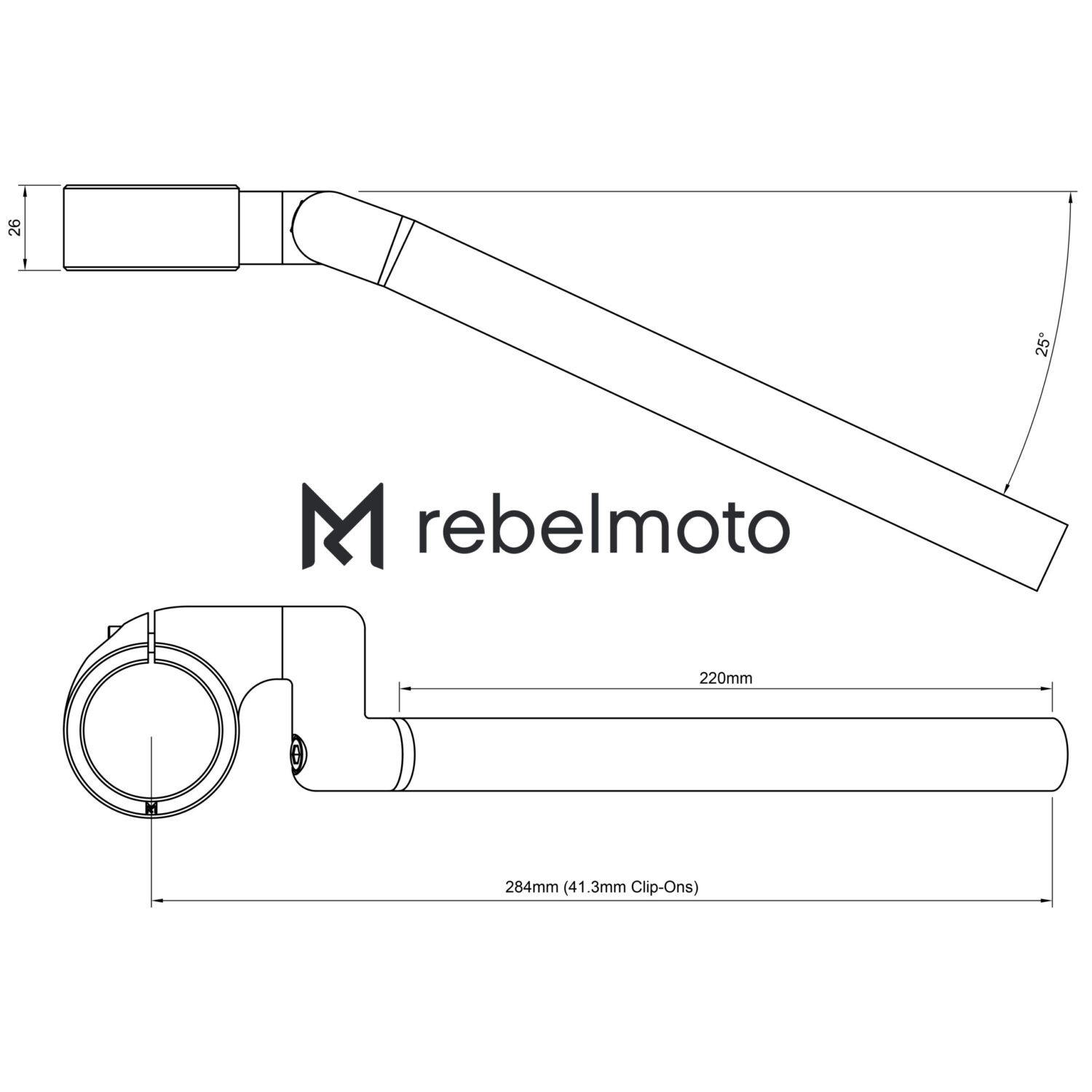 Die Clip-On Stangen sind 220 mm lang und im Gegensatz zu vielen anderen Clip-On Stangen können Sie die gesamte Länge nutzen. Einige Hauptzylinder mit festem Reservoir können schwierig zu montieren sein, da sie zu nah an den Klemmteil des Clip-On kommen. Aufgrund des Designs ist dies bei den Rebelmoto Clip-ons nicht der Fall.