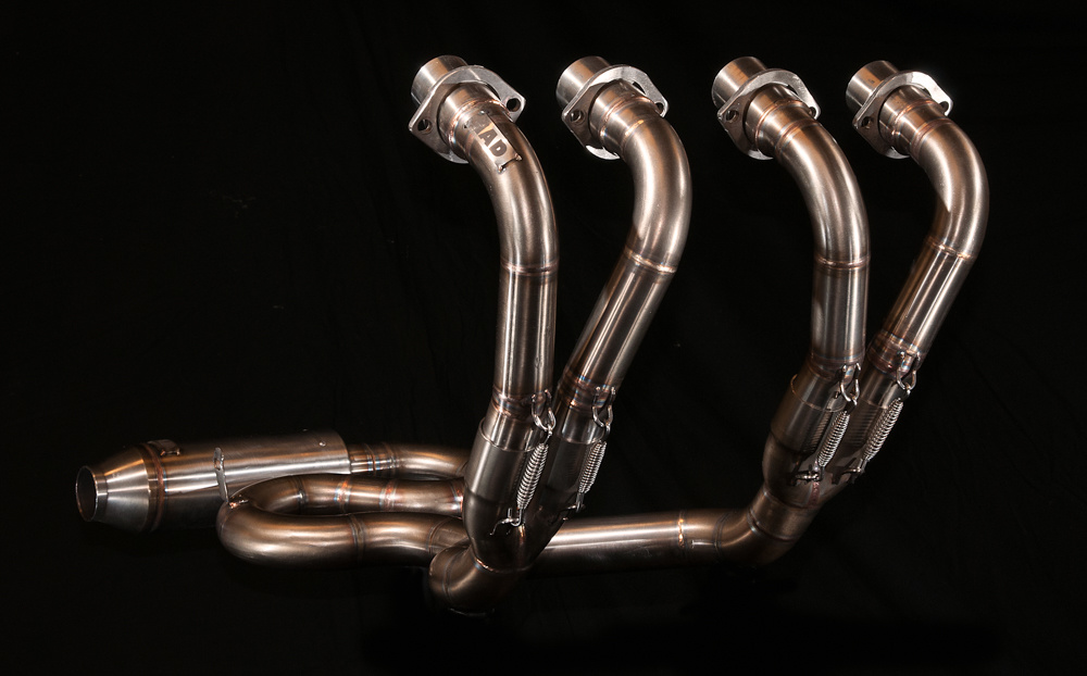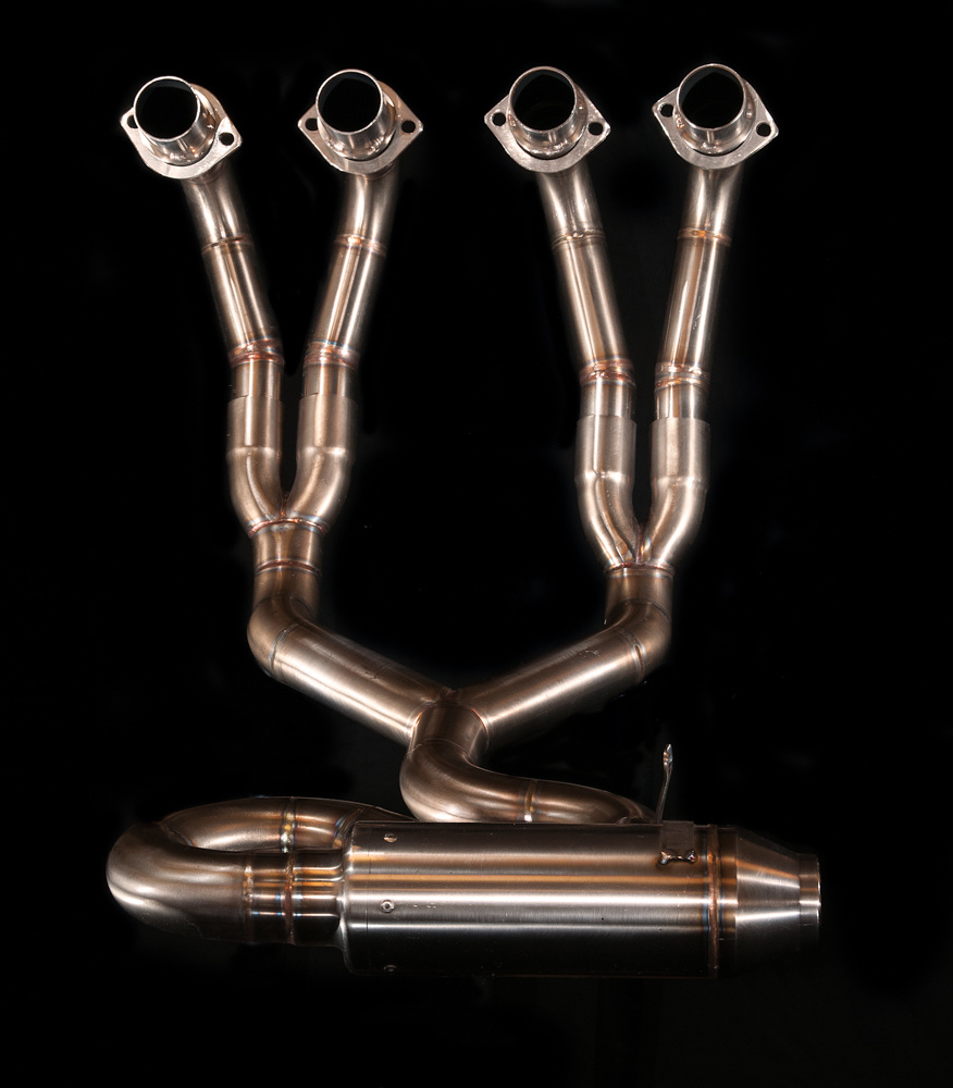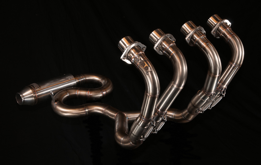 Die Auspuffanlagen bestehen aus Edelstahl. Die Rohre haben einen Durchmesser von 45 mm und der Schalldämpfer passt auf einen 44,5- oder 38-mm-Flansch, je nachdem, welchen Schalldämpfer Sie bestellen möchten. Der Auspuff wird mit einem "Race Only" -Dämpfer geliefert.