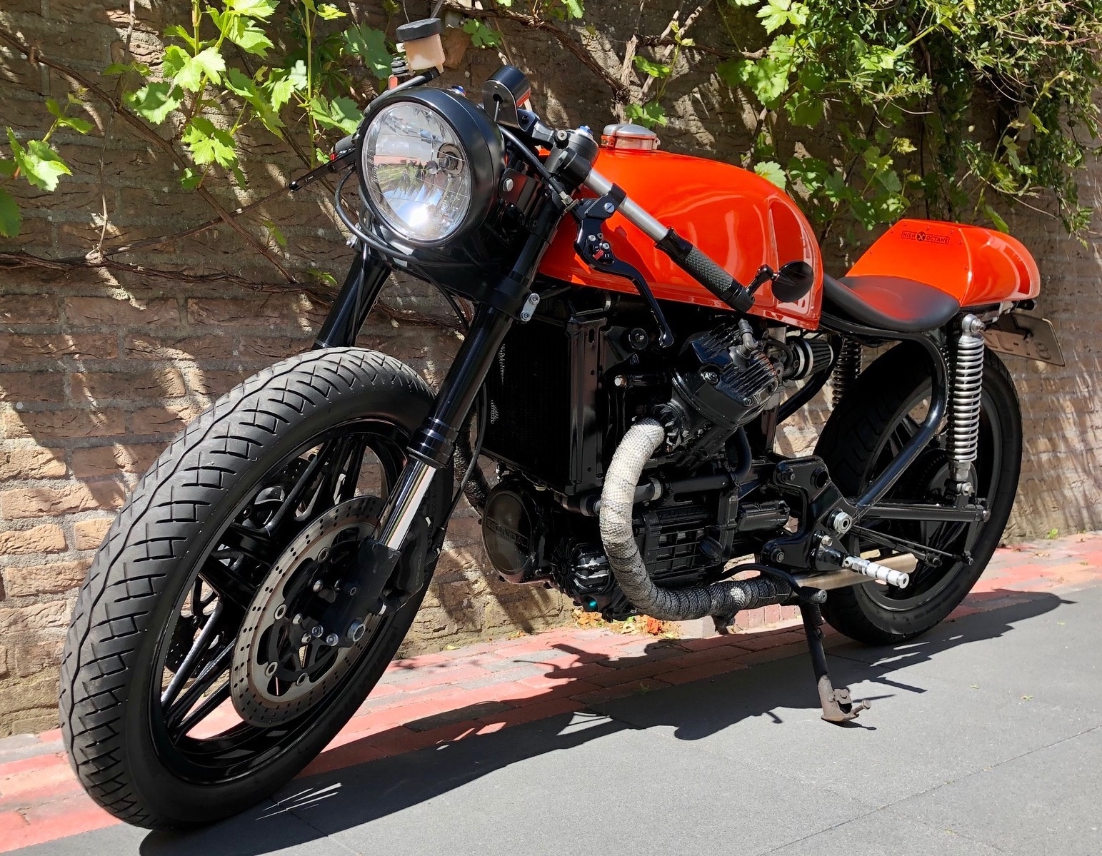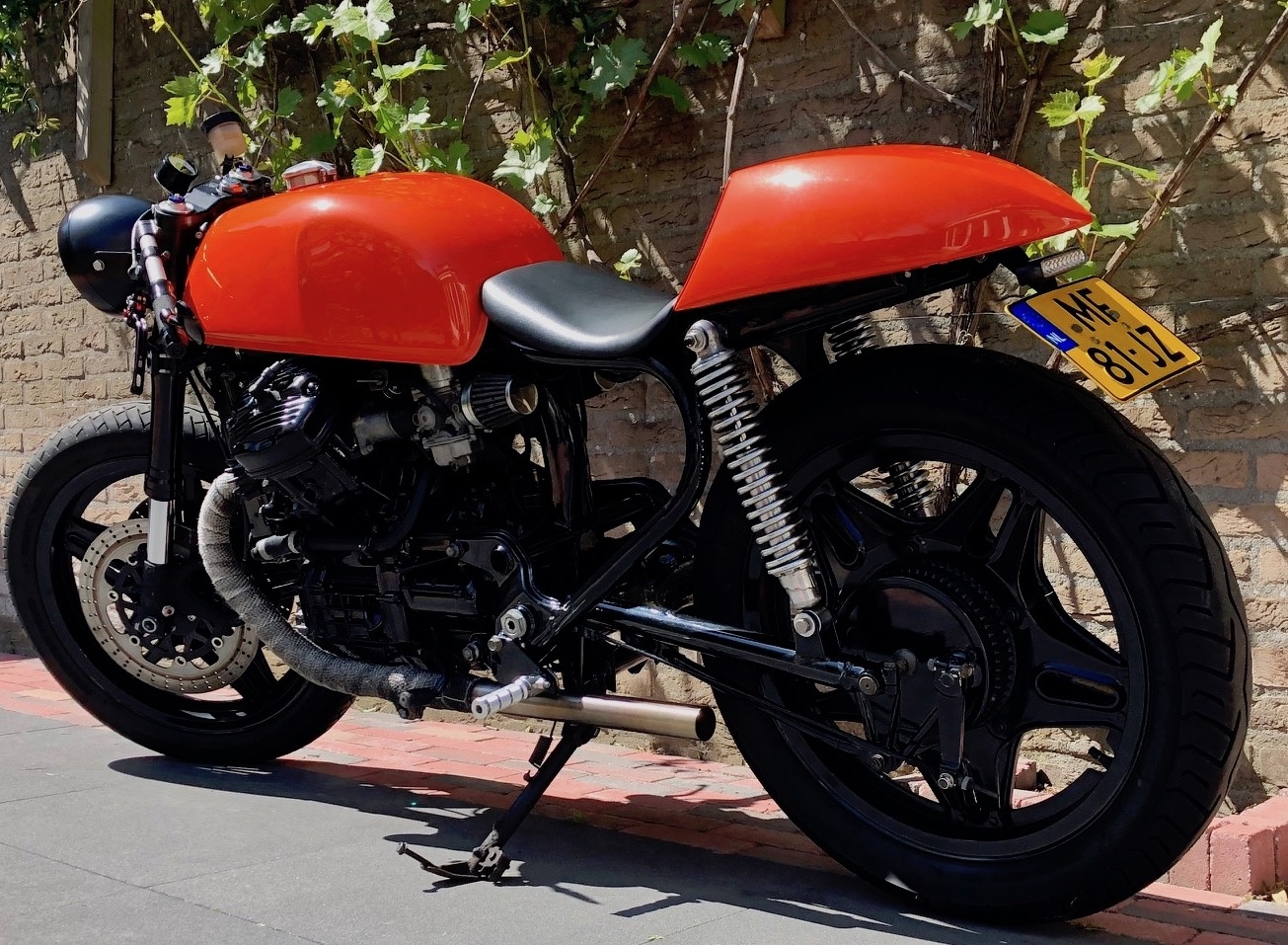 LieberCafe RacersLiebhaber,Ich stellte mein Fahrrad vor Kummer weg. Leider komme ich nicht mehr zum Fahren. Gekauft als original Honda CX500 (1983) im Jahr 2014 und umgewandelt inCafe Racermit vielen Stunden Arbeit (auch von highoctane.nl ). Ein wunderschöner Motor mit einem wunderbaren Klang!Block überholt und pulverbeschichtet, lief 4000 km nach der Überholung (etwas Öl schwitzen, ursprüngliche Laufleistung unbekannt);Neuer Ölfilter und Öl;Kundenspezifischeroffener Auspuff auf beiden Seiten;Luftfilter öffnen;Pulverbeschichteter Rahmen und Felgen;Vordergabel eines CBR600RR mit überholten und mitDistanzstückenfür die originalen CX-Felgenmontierten Bremsen;Hinterradbremse überholt;Hinterradaufhängung überholt;Gestrahlter Benzintank, klassischer Tankdeckel montiert und auf Dichtheit druckgeprüft;Lithium-Ionen-Akku imCustomButt;Neu gestrichen inMandarin Orange (leider wurde im letzten Sommer eine Blase in der Farbe erzeugt);Neuer Kabelbaum undBrian Box;M-Lock schlüssellose Zündung;Neuer (digitaler) Zähler (Geschwindigkeit und Kilometerstand);KundenspezifischerLedersitz;Neue Griffe (Rizoma);Neuer Spiegel (Rizoma);LED-Rücklicht inklusive Bremslicht;KundenspezifischeFußstützen.Preisvorstellung 3000 Euro.Rik HakBreda (NL)+31 6 51 69 47 78