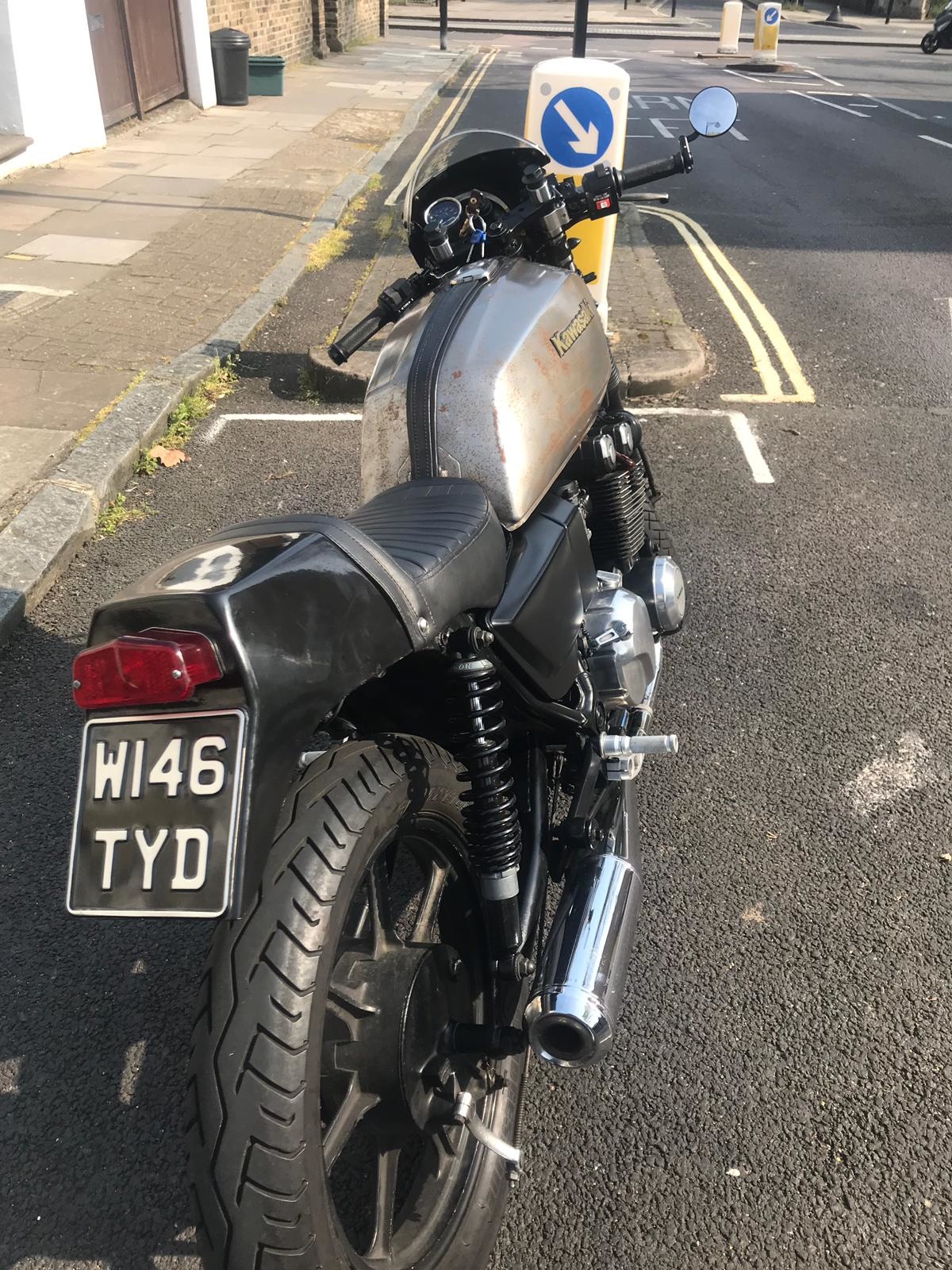 Schön aussehender Kawasaki GT550 Cafe Racer, W reg (2000) £ 2000, South Birmingham, liebevoll restauriert und modifiziert (von einem Vorbesitzer), Cafe Racer-Stil, abgesenkter Lenker, zurückgesetzte Fußrasten, Rahmen hinten gekürzt. Gute Reifen / Bremsen. Tank zurückgezogen und mit schöner Patina lackiert. Bestanden MOT im vergangenen April keine Probleme, keine Hinweise. TÜV am 16. Oktober 2020 fällig (verlängert aufgrund von Covod-19). Seitdem nur minimal gefahren. 26.000 Meilen von neu gemacht. In einem sicheren Bereich unter Deckung aufbewahrt. BITTE BEACHTEN SIE: Der Reitstil eines Cafe Racers passte nicht zu mir, daher der Verkauf. Ich habe versucht, es mir bequemer zu machen, indem ich den Lenker angehoben und die Fußrasten wieder auf Originale umgestellt habe, aber das Problem, dass das Fahrrad einfach zu groß für mich ist, um mit diesen Modifikationen zu fahren, nicht gelöst. Ich habe immer noch die alternativen Fußstützen und sie können leicht ersetzt werden. Der Lenker wäre eine einfache Aufgabe, um den vollständig abgesenkten Cafe Racer-Stil wiederherzustellen. Benötigen Sie nur einen Schraubenschlüssel!