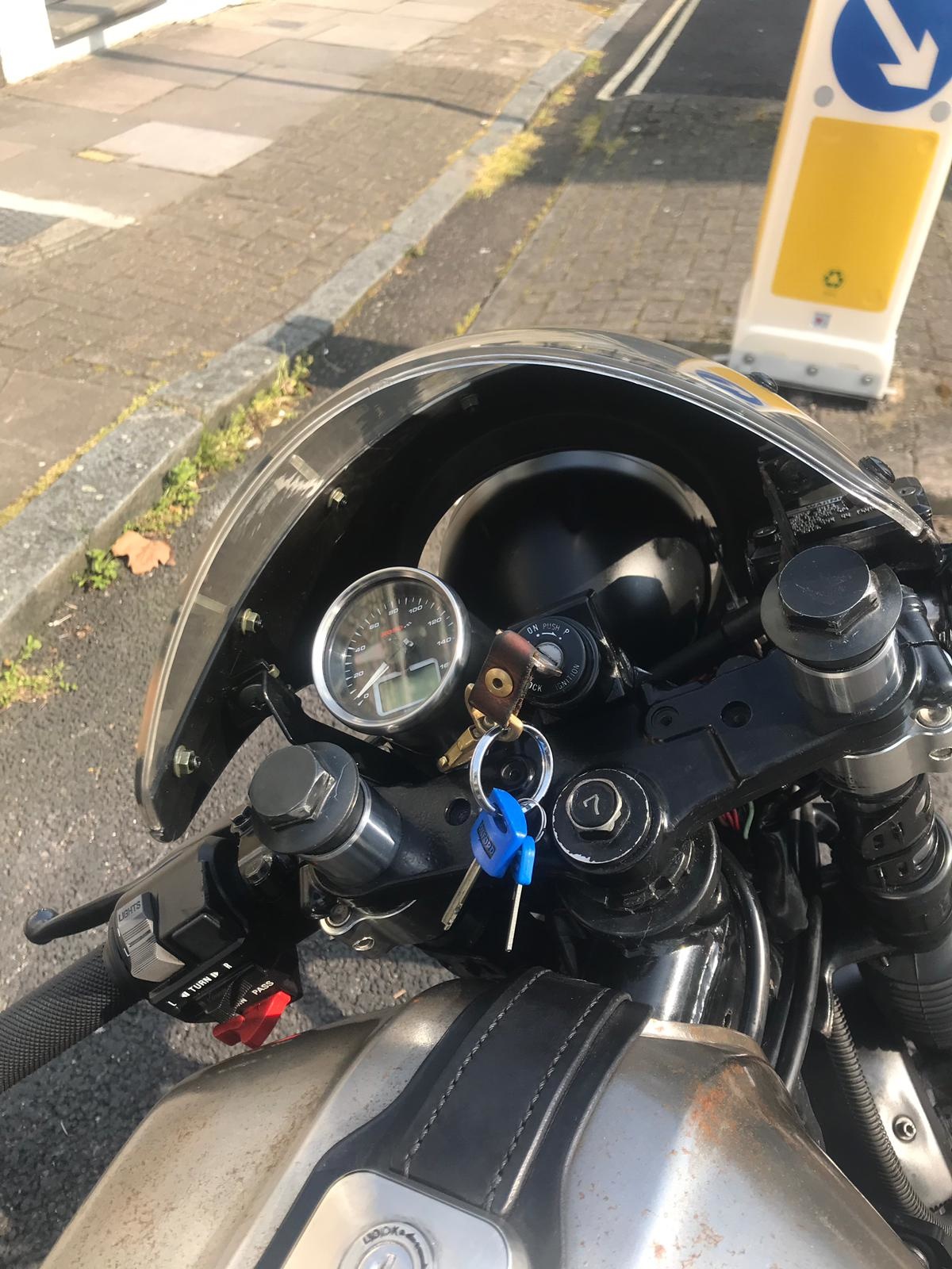 Seit einigen Monaten nicht mehr gefahren, da die Batterie blockiert ist und die Batterie in dieser Zeit leer ist. Kann ersetzen, damit es gestartet werden kann. Oder der Käufer kann bei Bedarf ersetzen. Beachten Sie auch, dass der Tacho während des Transports im letzten Jahr getrennt und derzeit nicht verbunden wurde. Hat seitdem kaum Meilen zurückgelegt, muss aber sortiert werden.
