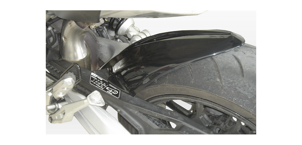 Kotflügel hinten für Aprilia Dorsoduro 750. Schützt den hinteren Stoßdämpfer vor Schlamm und schützt die Füße von Fahrer und Beifahrer vor Wasser.