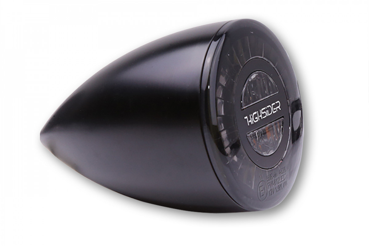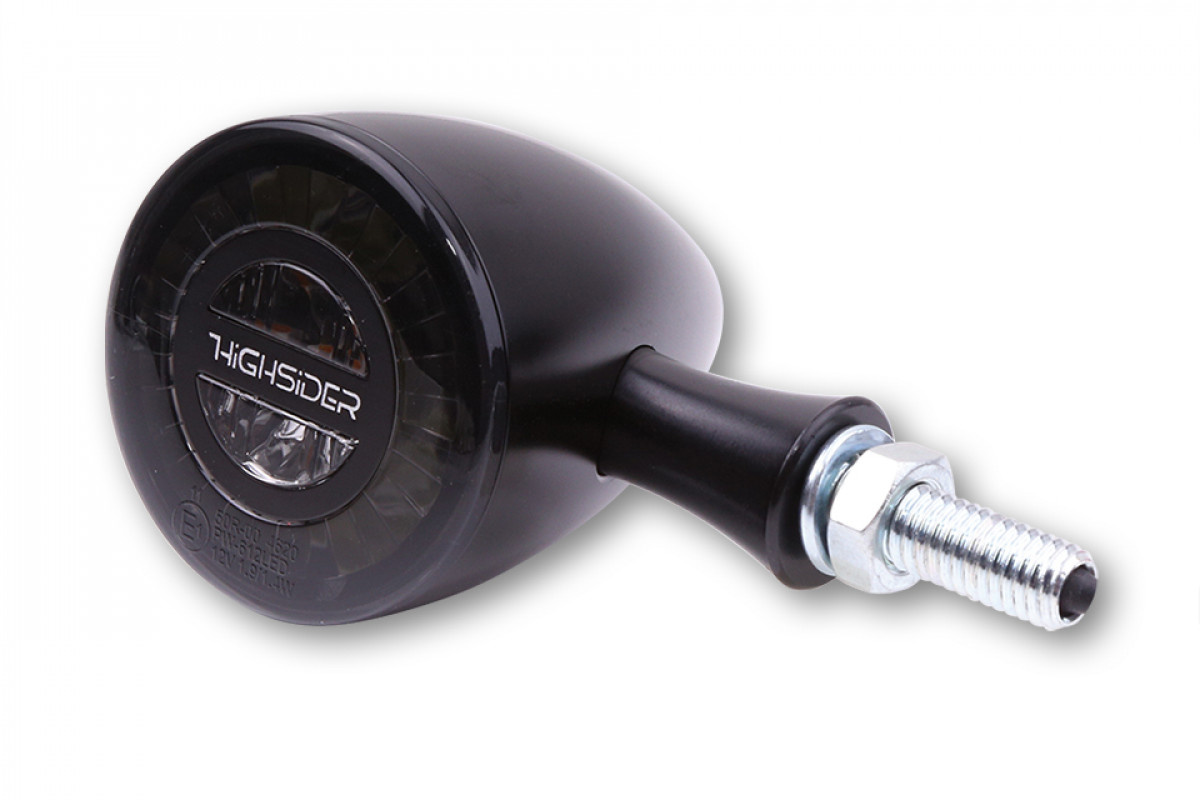 HIGHSIDER ROCKET BULLET LED-Blinker / Positionslicht mit Aluminiumgehäuse und getöntem Glas.