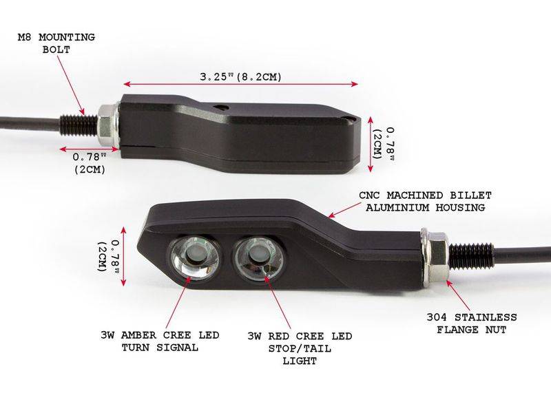 LED-Blinker- / Rücklicht-Einheit CNC Schwarz