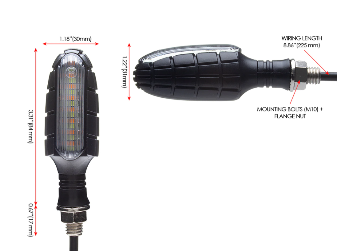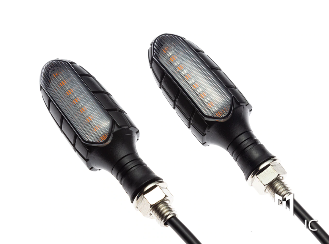 Diese integrierten LED-Blinker kombinieren Blinker- und Tagfahrlichtfunktionen, die für die Vorderseite Ihres Motorrads benötigt werden. LEDs ändern ihre Farbe zwischen den Funktionen - Gelbe LED für Blinker und Weiß für Tagfahrlicht.