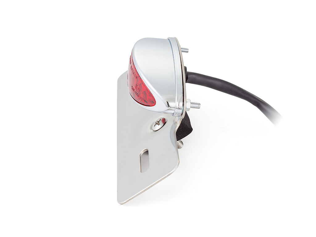 LED rotes Rücklicht mit Kennzeichenhalter. Robuste Lampe mit Bremslicht. Schöne Alternative zu den beliebten Atomic-Rückleuchten.