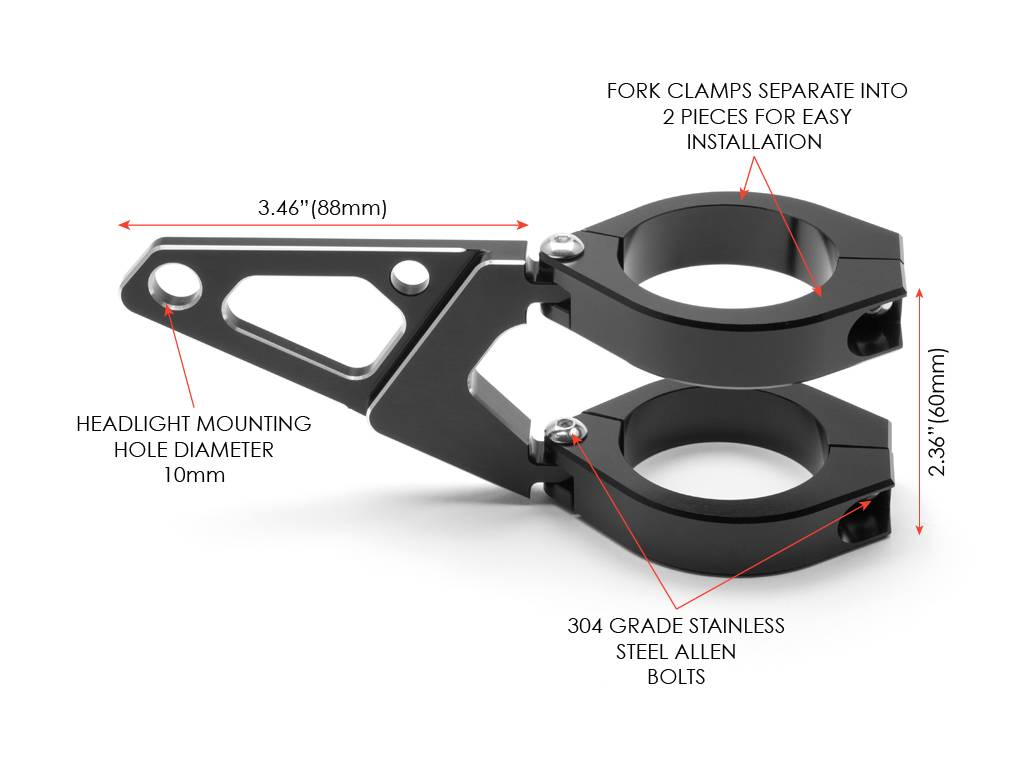 Diese hochwertigen kontrast geschnitten Lampenhalter sind aus gefrästem T6061 Aluminium gefertigt und verfügen über verstellbare Arme, die für unterschiedliche Breite Scheinwerfer ermöglichen.