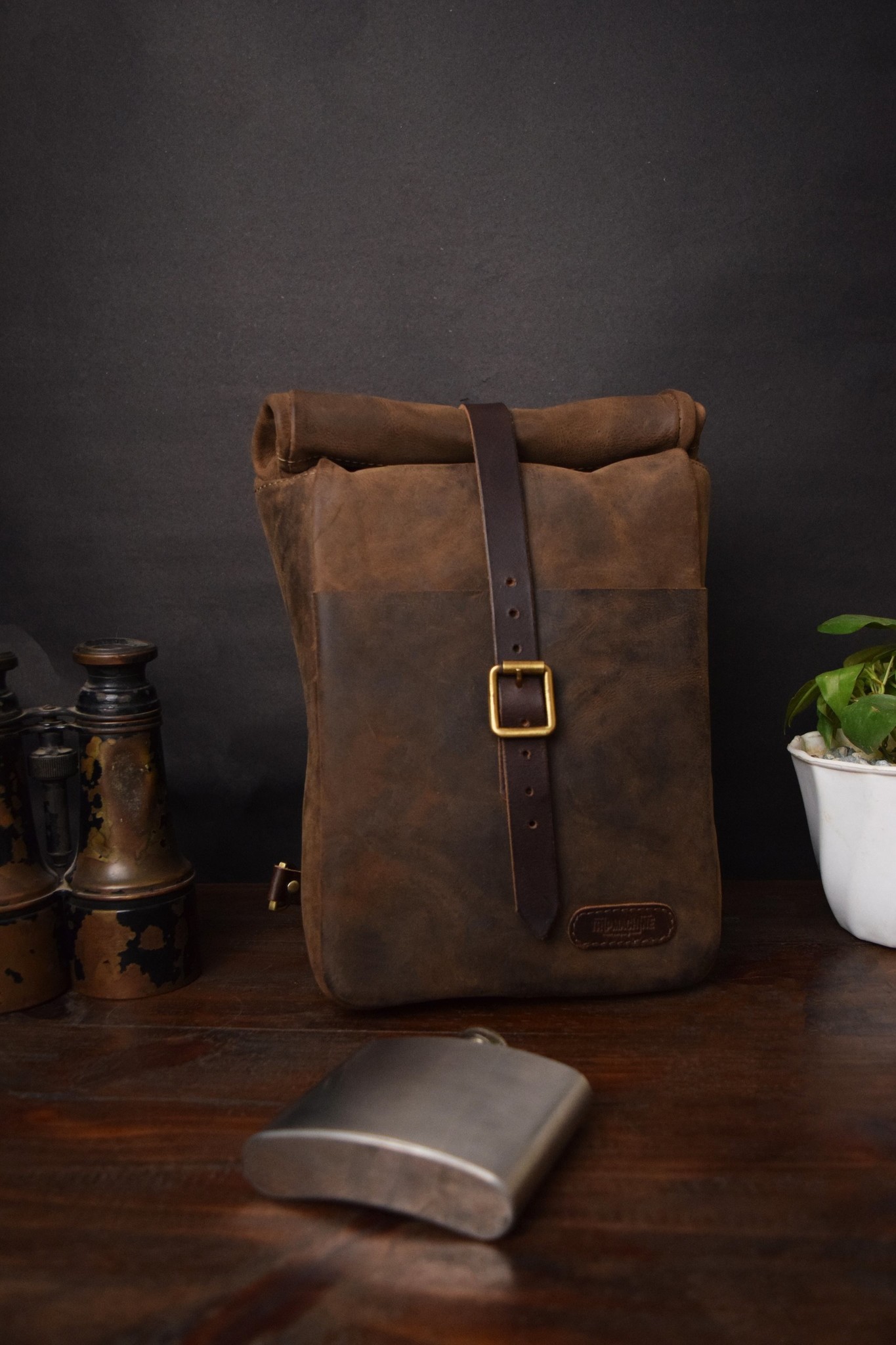 Die Minitasche ist der Mini-Me unserer Rolltop-Rucksackpacktasche. Sie ist in jeder Hinsicht identisch mit der Rucksackpacktasche, hat aber nur ein Drittel ihrer Größe. Das bedeutet, dass Sie sich damit begnügen müssen, ein Tablet statt eines Laptops mitzuführen.