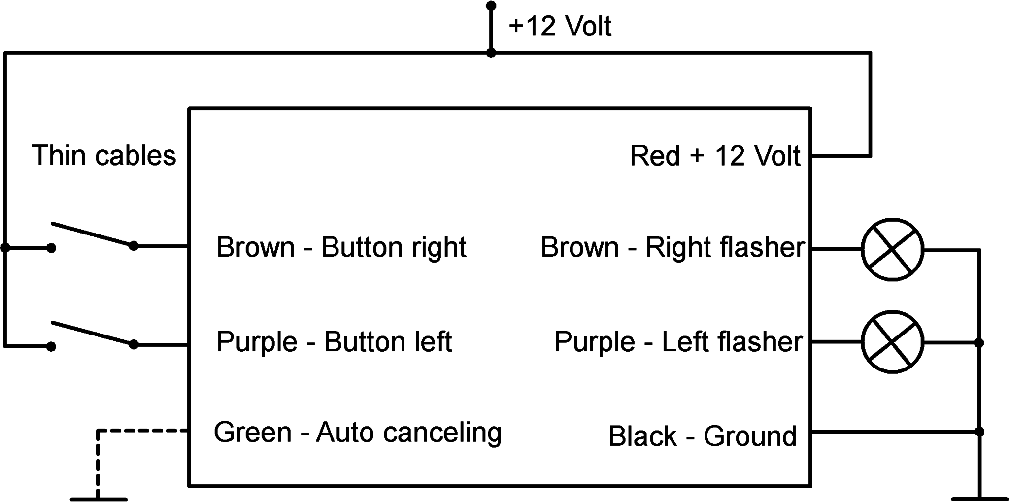 Dies ist eine kleine Blinksteuerung für Drucktasten in einer kleinen Verpackung, die in jeden Lenker passt. Dieses Gerät wird über 12-Volt-Eingänge gesteuert, was die Implementierung in einen vorhandenen OEM-Kabelbaum erleichtert, wenn keine minimale Verkabelung erforderlich ist. Eine automatische Abbruchfunktion kann aktiviert werden. Es schaltet die Anzeigen nach einer Weile aus, wenn keine Taste gedrückt wird.