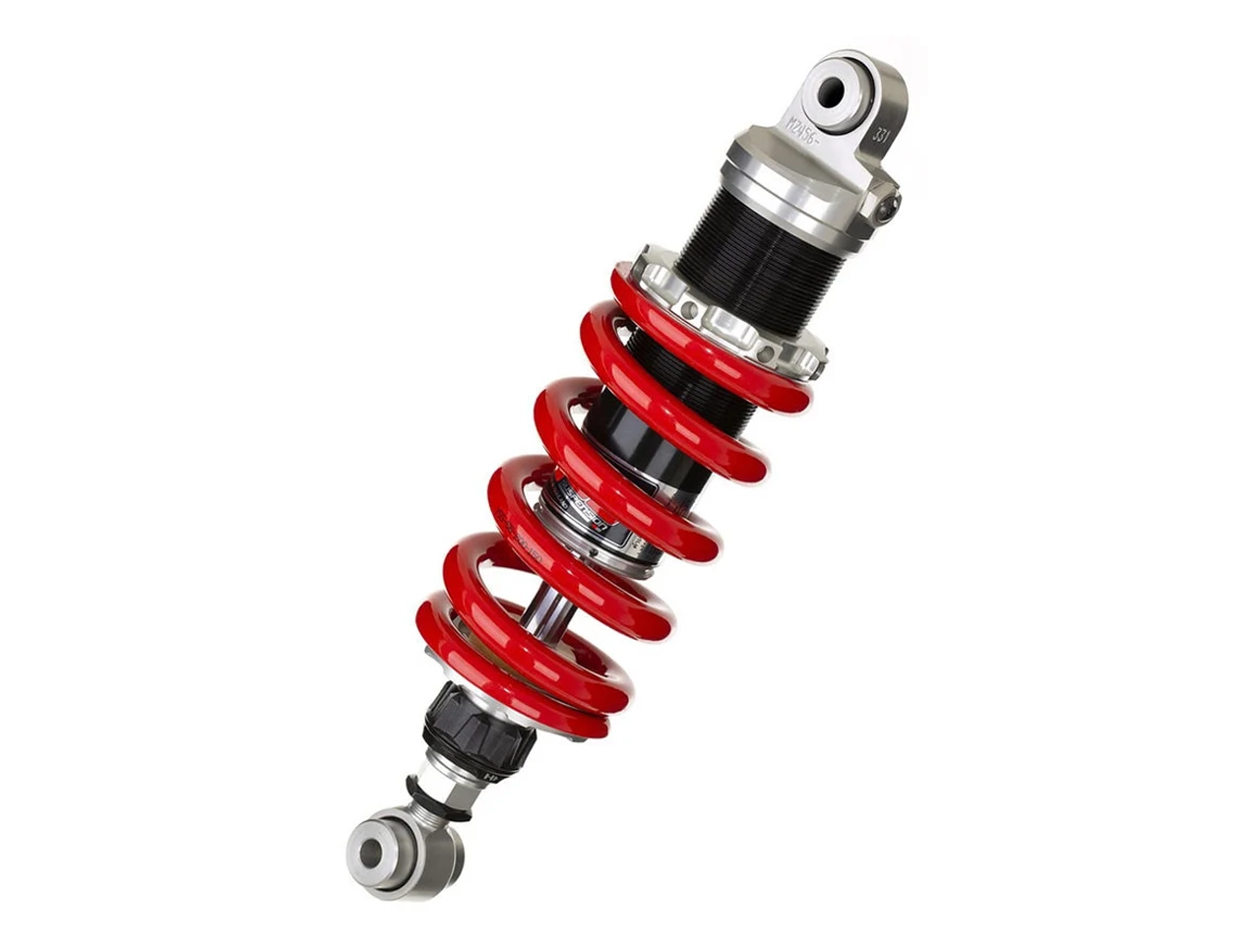 Selbsteinstellende Mono-Gasdruckdämpfer - 50mm radialer, aus dem Vollen gefräster Kolben - 16mm gehärteter Schaft mit geringer Reibung - langlebige Dichtung - Vorspannungseinstellung mit Maulschlüssel - Zugstufeneinstellung 60 Klicks - einstellbare Länge (soweit technisch möglich) - Dämpfung und Feder sind modellspezifisch