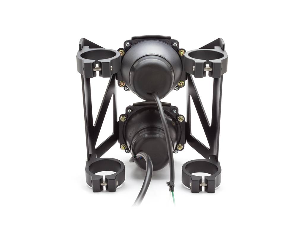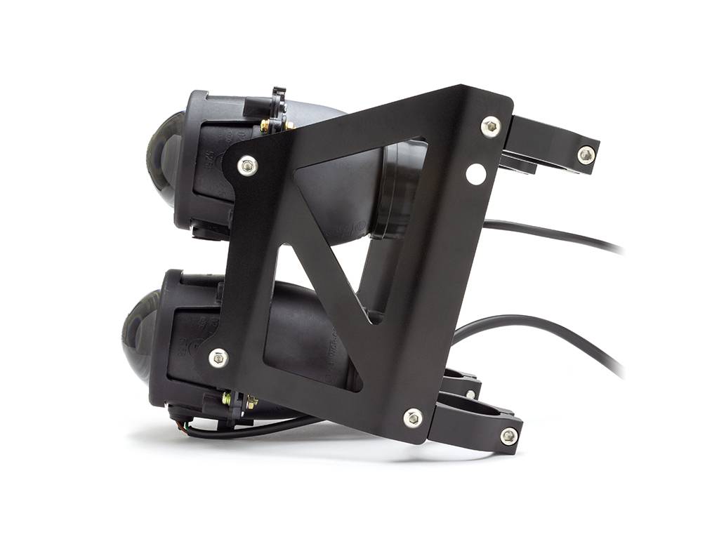 Die universelle Halterung besteht aus Aluminium und hat vier Gabelklammern, die einfach an Ihre Motorradgabeln geklemmt werden.