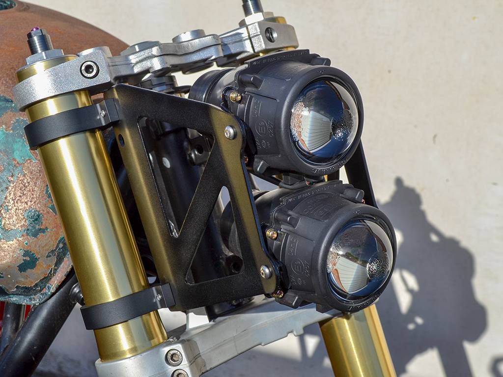 Dieses gut aussehende Scheinwerfer-Kit wird mit einem Projektor-Scheinwerfer geliefert und kann leicht an den meisten Motorrädern angebracht werden.