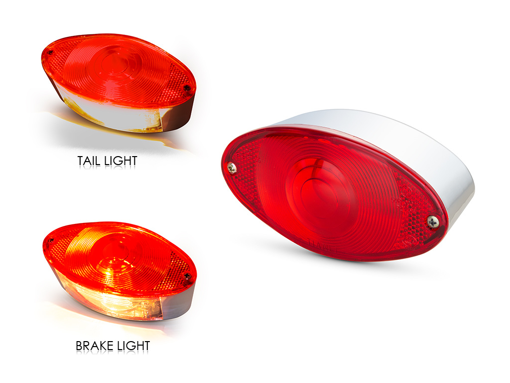 Ovales E-markiertes Stopp- / Rücklicht Chrom / Schwarz. Hochwertiges Custom-Rücklicht mit Universalbefestigung. Dieses Rücklicht hat auch ein Bremslicht und arbeitet mit 12 Volt. Das Gehäuse besteht aus ABS und wir liefern sie in Chrom oder Schwarz.