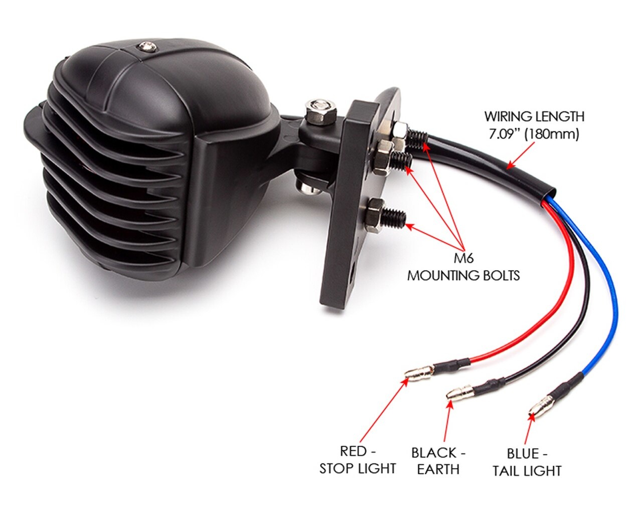 Prison Retro Grill LED Rücklicht Rot / Schwarz. Sehr schönes Licht mit einem sehr gepflegten Abgang. Dieses Rücklicht ist höhenverstellbar und macht auf beiden Seiten eine gute Figur
