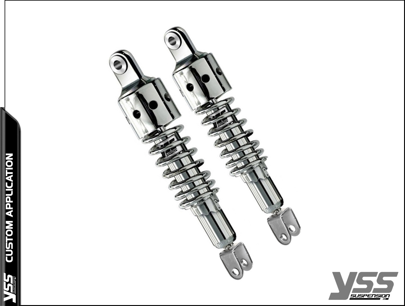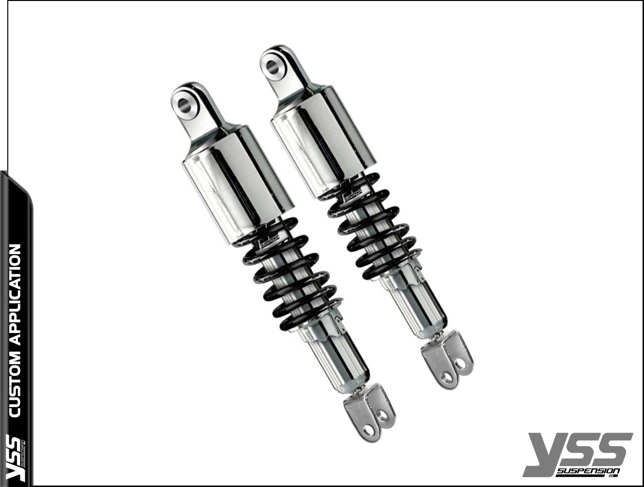 YSS supplies the shock absorbers in the lengths 310mm, 320mm, 335mm en 365mm and are supplied as standard in a chrome version with black springs
